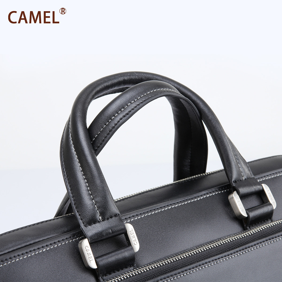 【非卖品】Camel骆驼 牛二层皮黑色 手提包 单肩包 公文包 商务