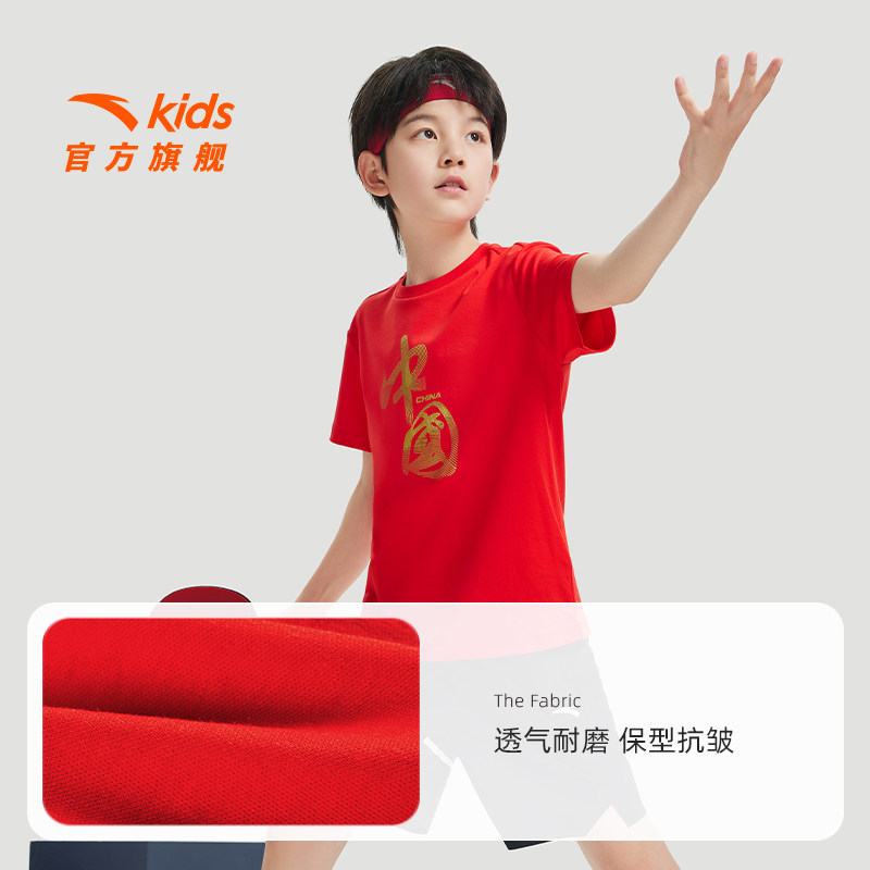 【清仓价】安踏儿童男童针织短袖衫柔软大童纯棉短袖