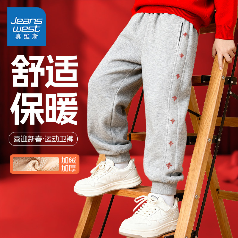 真维斯童装男童加绒裤子冬季儿童2026新款马年本命年卫裤加厚棉裤