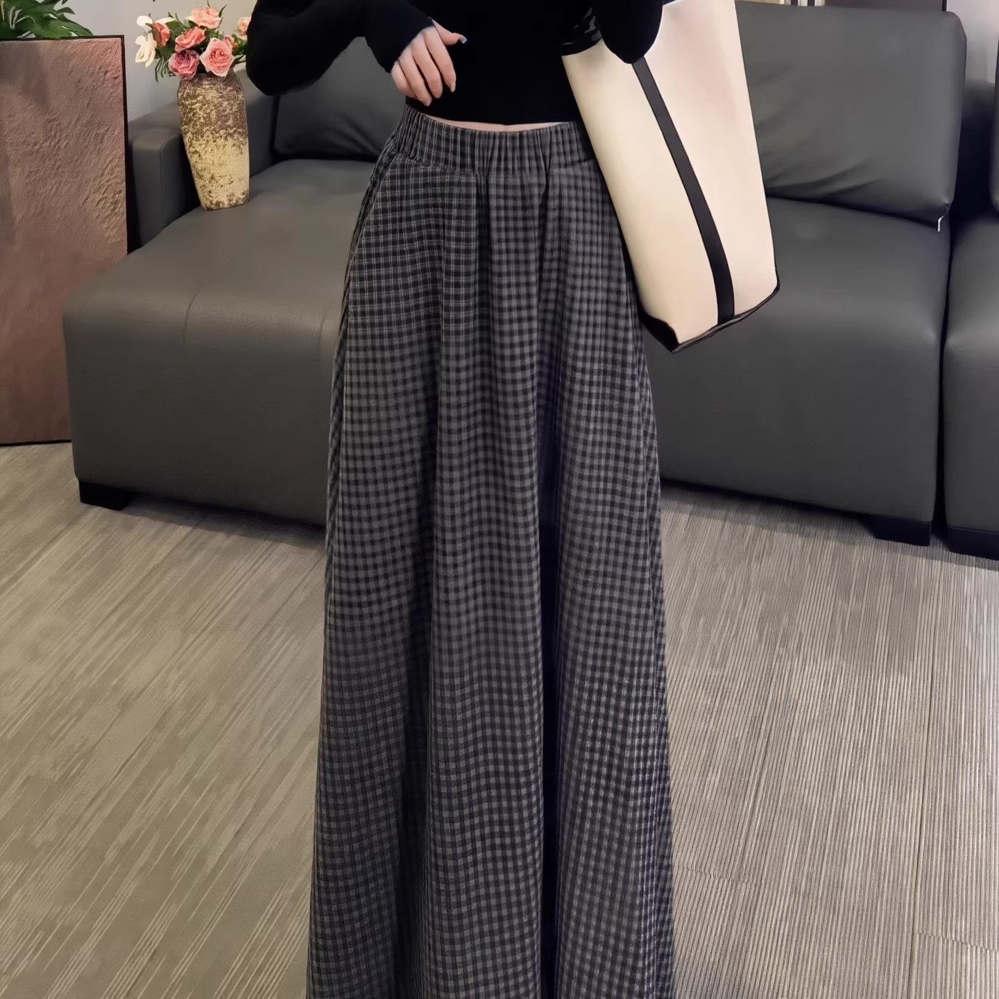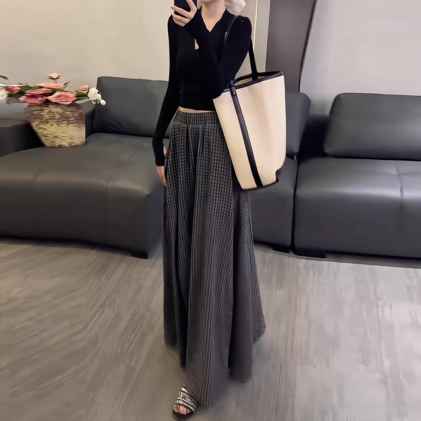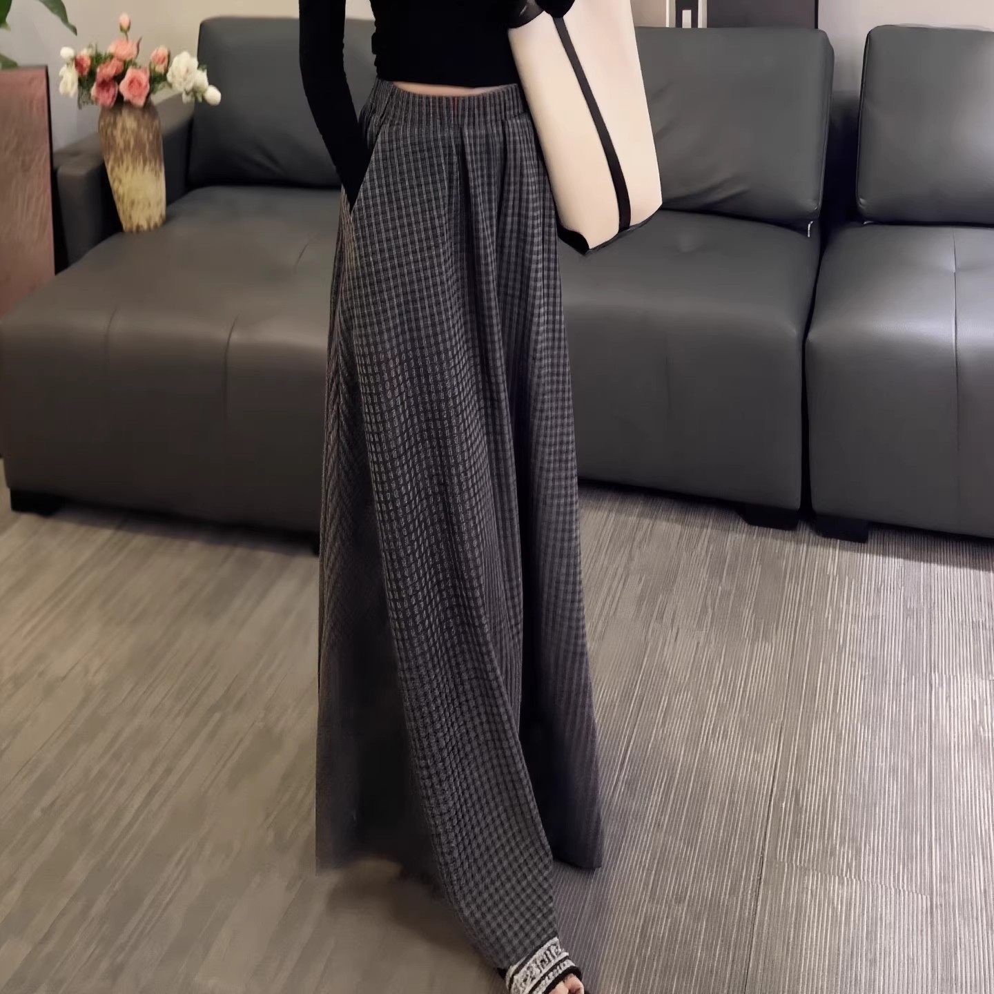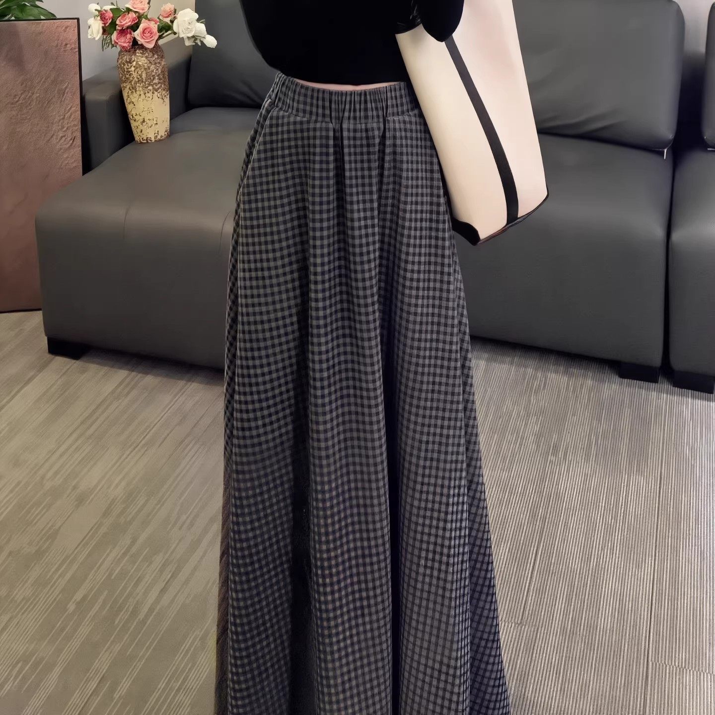 高腰显瘦垂坠感半身裙女复古风格纹褶皱蓝色2025秋冬新款加厚宽松