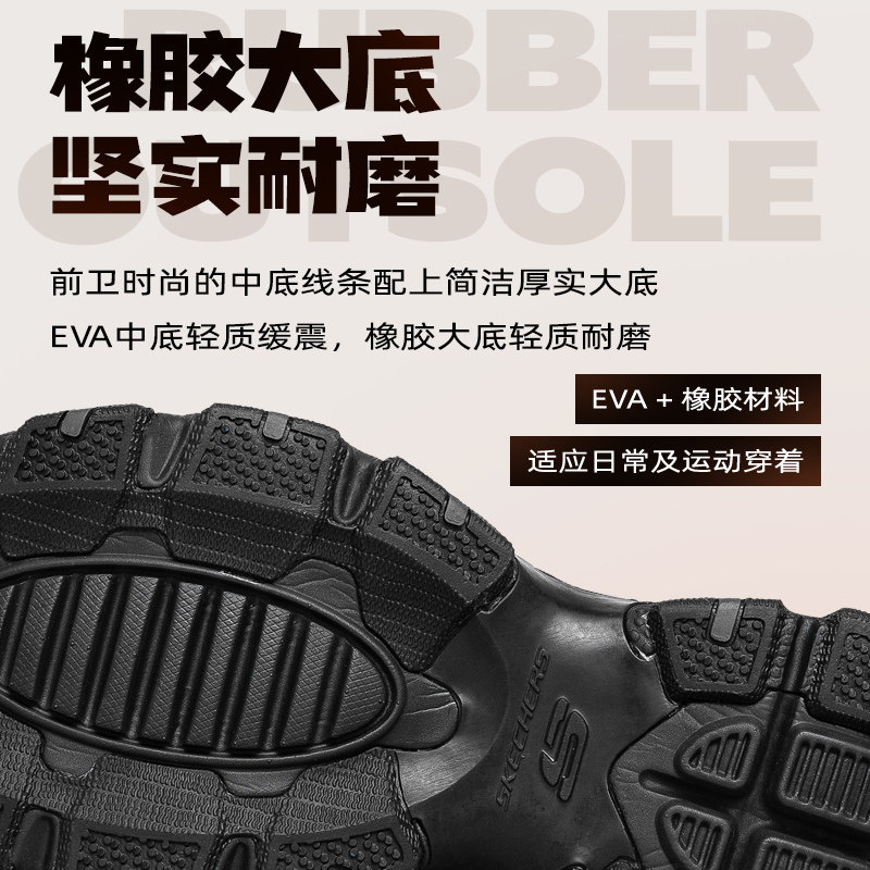 斯凯奇官方男鞋厚底熊猫鞋黑武士缓震轻质老爹鞋网面透气休闲鞋