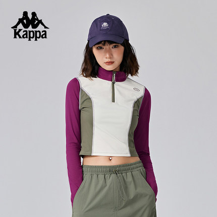 Kappa卡帕背靠背运动长袖t恤女2024新款秋半拉链套头衫女款