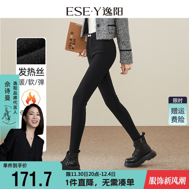 逸阳2024新冬款黑色显瘦打底裤女外穿紧身瘦腿铅笔加绒弹力魔术裤