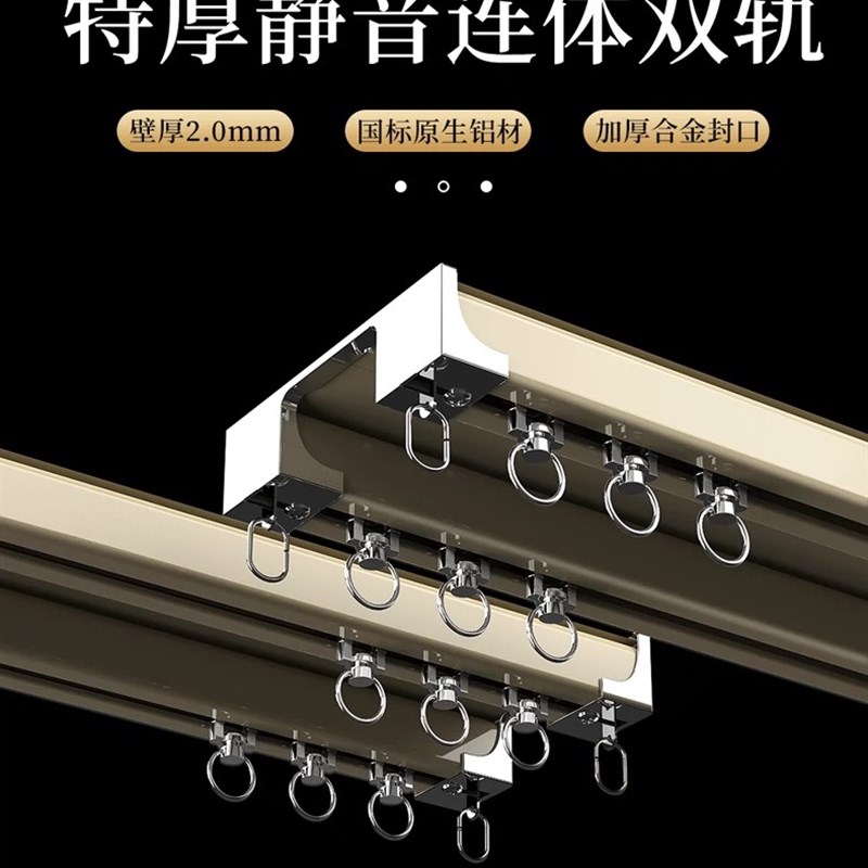 特厚窗帘轨道双轨静音连体铝合金挂钩式导轨滑轨滑轮侧装顶装可弯