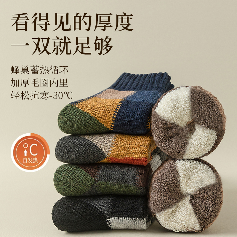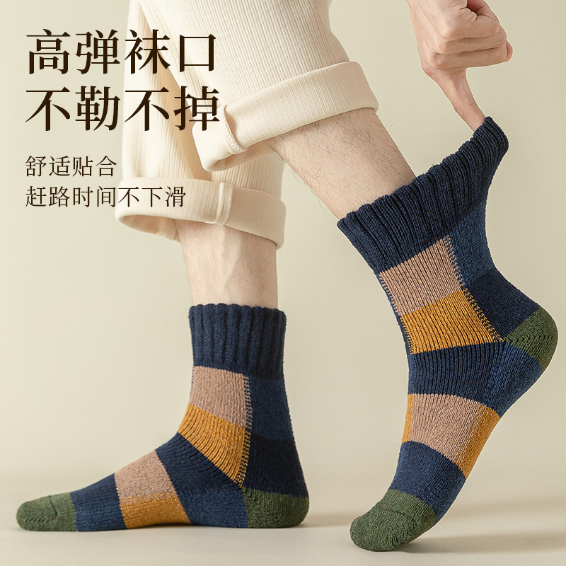 超厚羊毛袜子男冬季中筒棉袜加厚加绒长袜男士秋冬毛圈保暖长筒袜