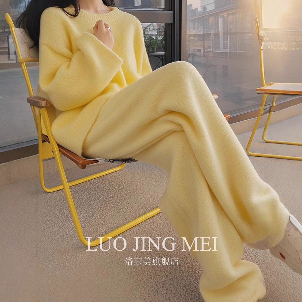 2025超火两件套慵懒风韩系温柔名媛气质松弛感奶黄色毛衣套装