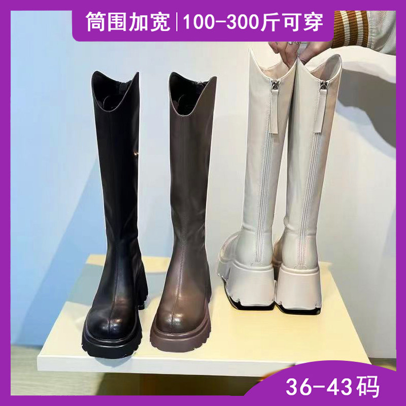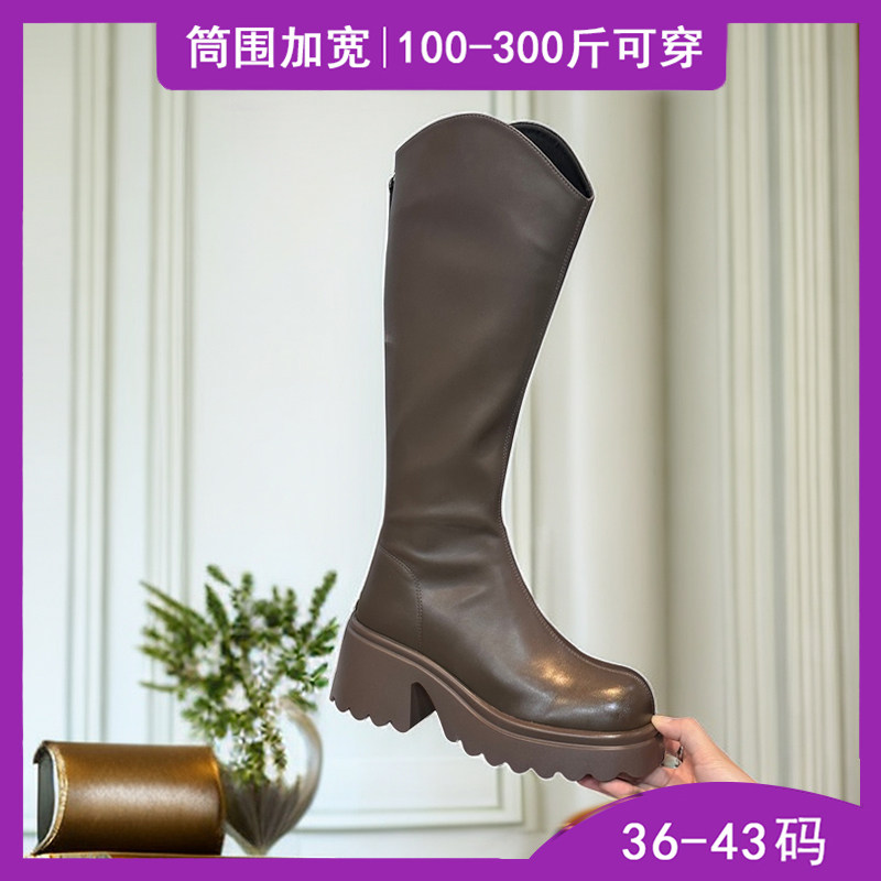 2025冬季大筒围女靴胖mm大码41一42粗腿骑士靴厚底不过膝长靴加肥