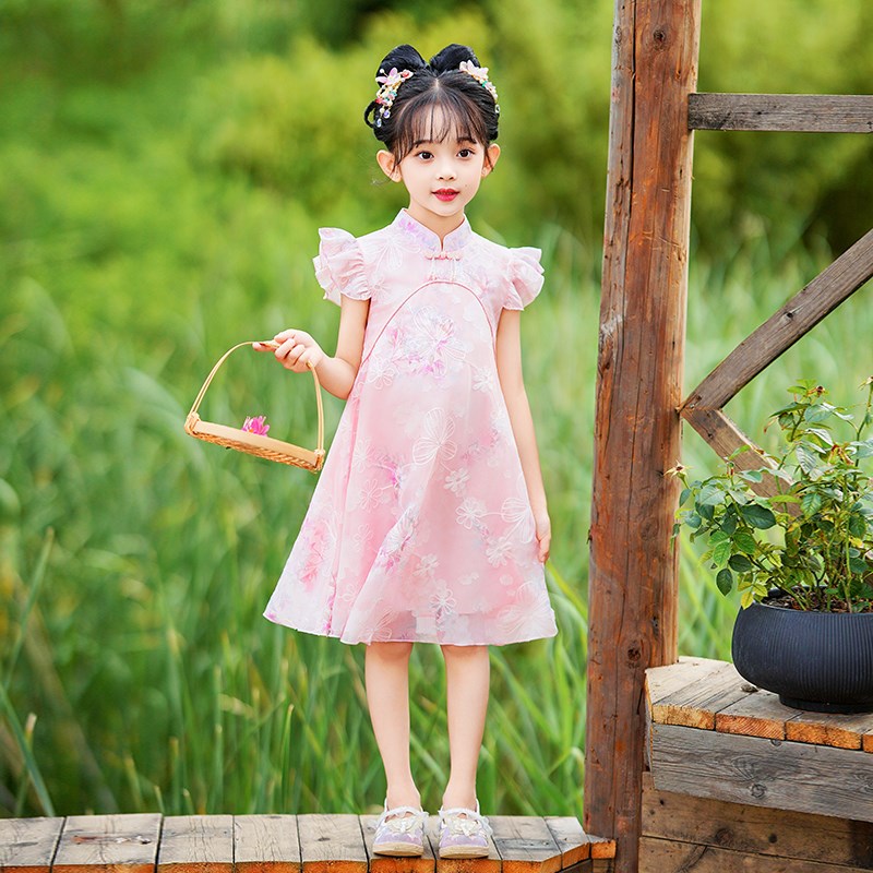 女童旗袍连衣裙2024新款夏季儿童裙子夏装新中式小女孩粉色公主裙