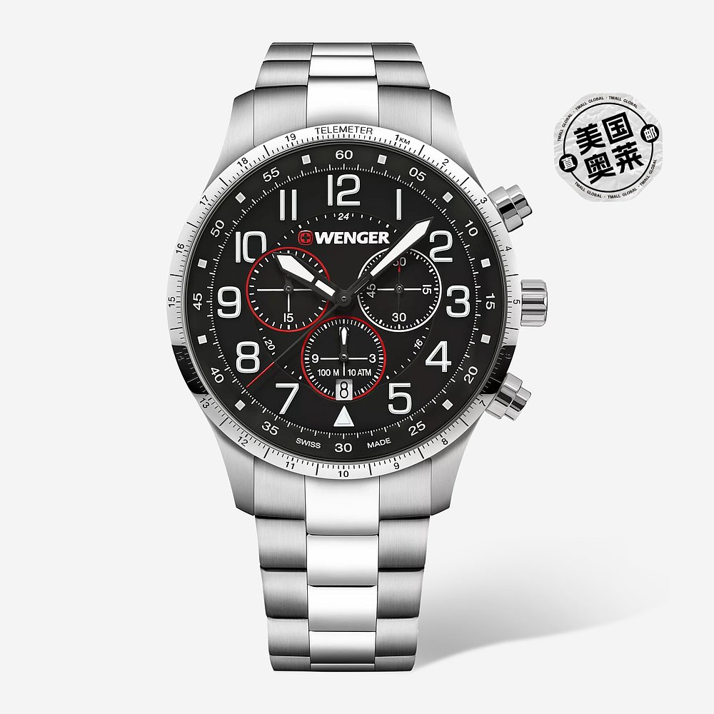 自营 WENGER 瑞士军表男式 01.1543.120 Attitude 黑色表盘计时码