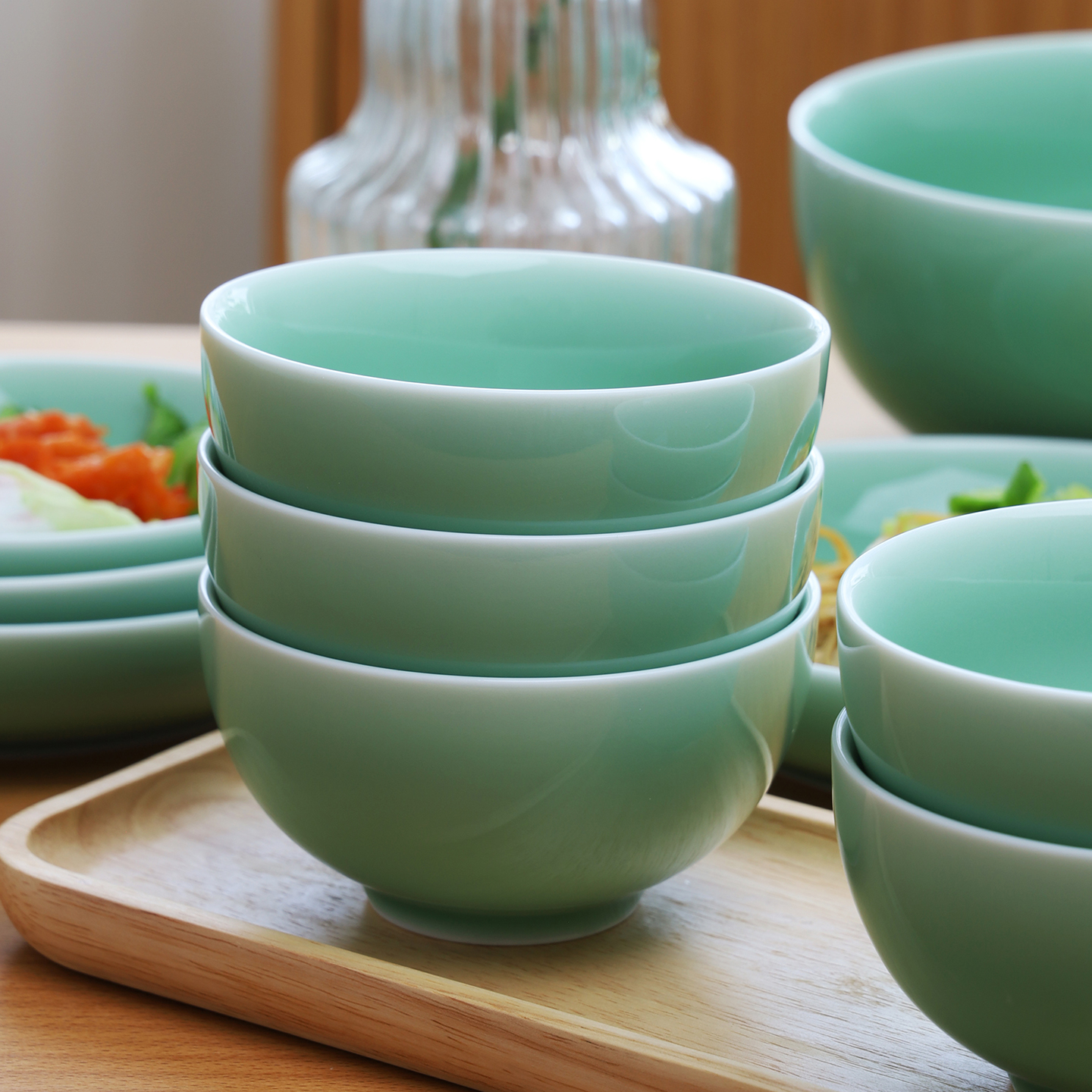 龙泉青瓷碗家用2025新款高颜值套装陶瓷碗喝汤碗防烫礼盒装礼品碗