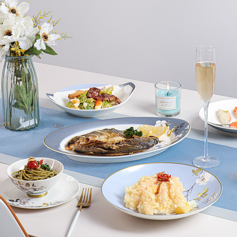 餐具套装饭碗面碗菜盘鱼盘品锅中式家用骨瓷碗碟碗盘组合陶瓷碗碟