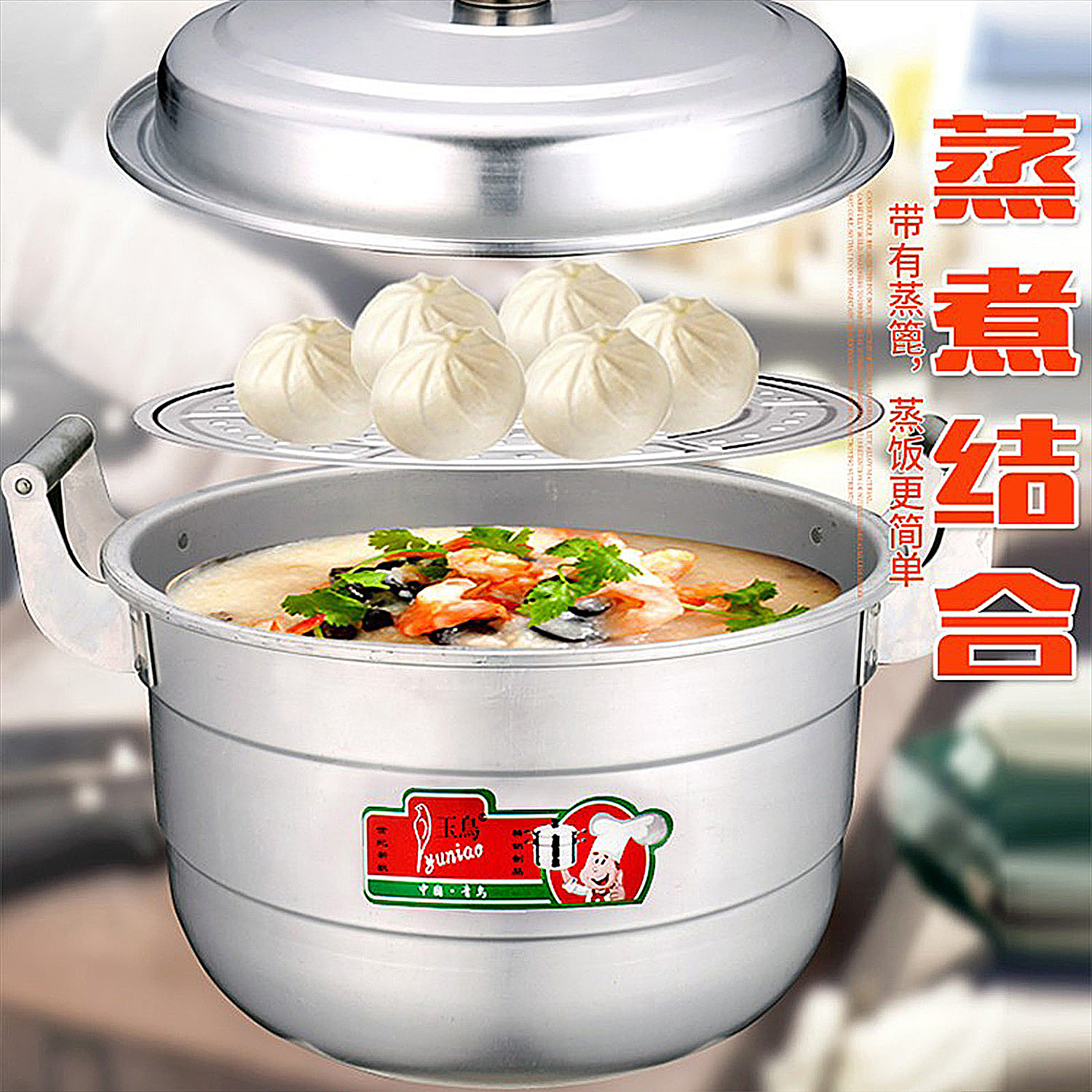 商用铝制大蒸锅老式特厚大铝锅大容量汤锅煤气燃气炉双层大蒸锅