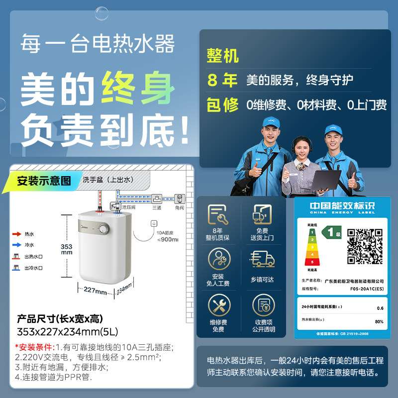 美的小厨宝5L储水式热水热水器家用厨房卫生间小型电热水器20A1C