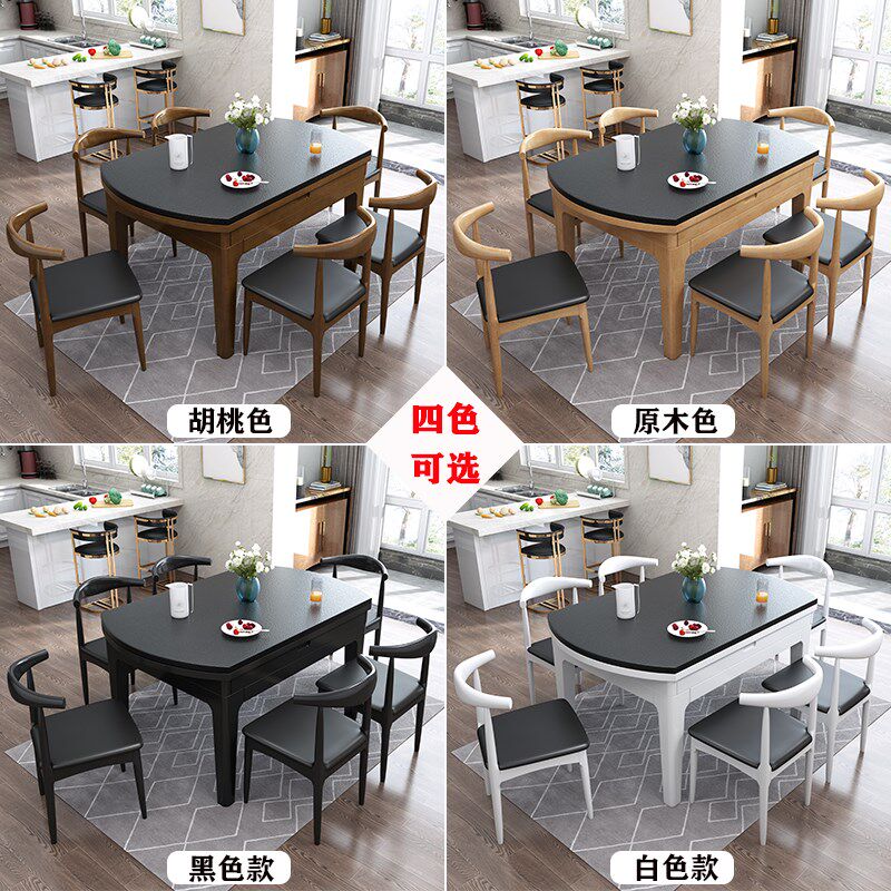 火烧石餐桌椅带电磁炉伸缩折叠圆桌全实木饭桌小户型家用桌子