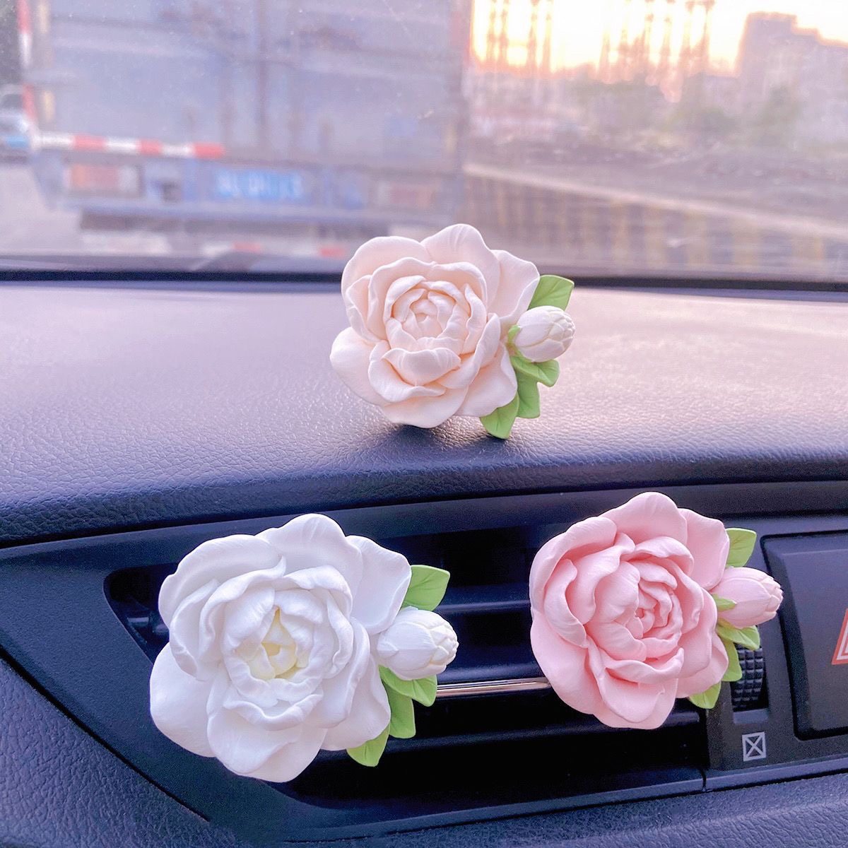 茉莉花车载香水香薰车内空调出风口装饰花朵扩香石女神香氛高级感