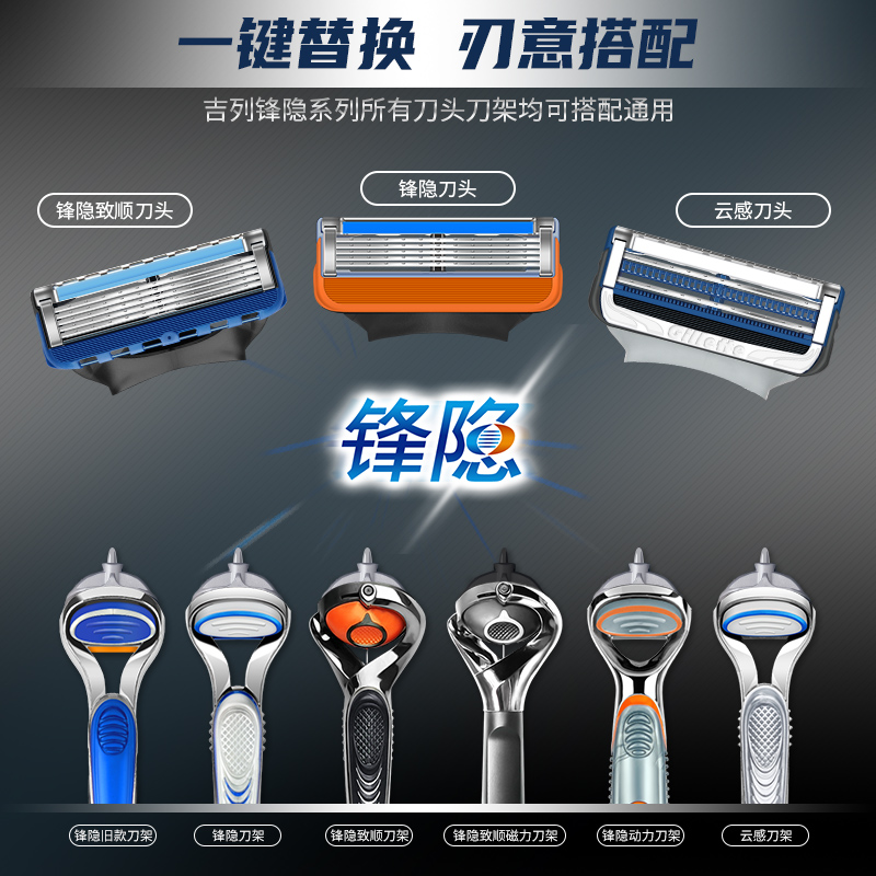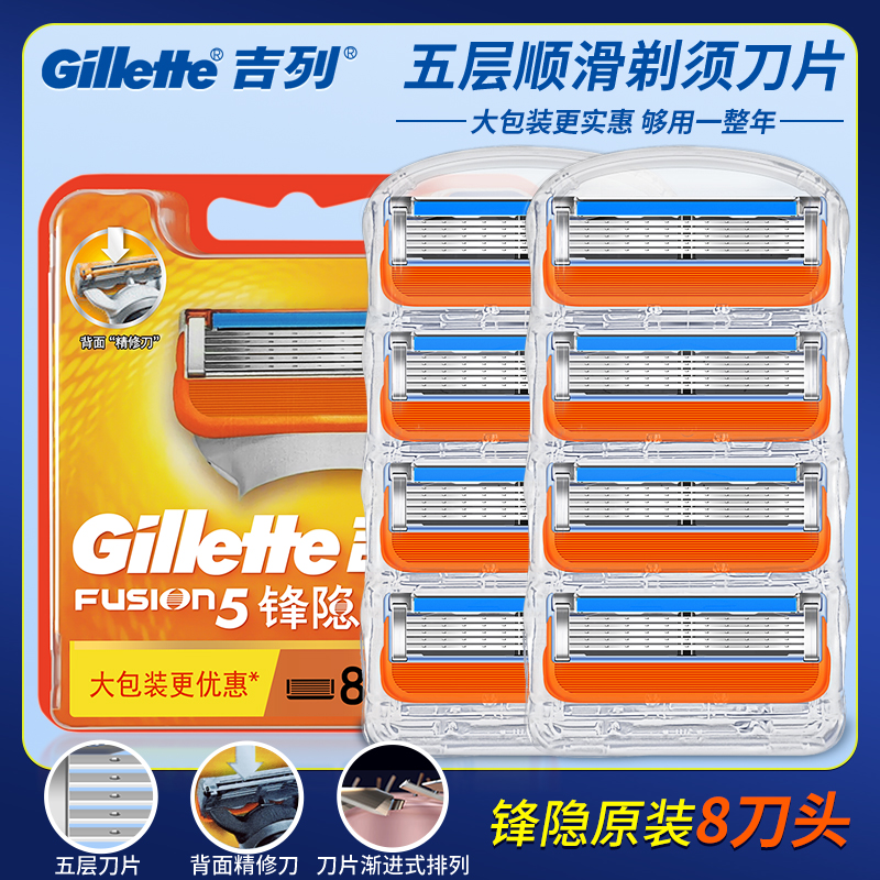 吉列锋速5刀片多个装 锋隐五层刀片手动剃须刀男士刮脸刮胡刀刀头