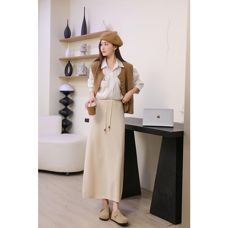 垂感针织半身裙女秋季2025新款韩系松紧腰显瘦a字包臀直筒中长裙