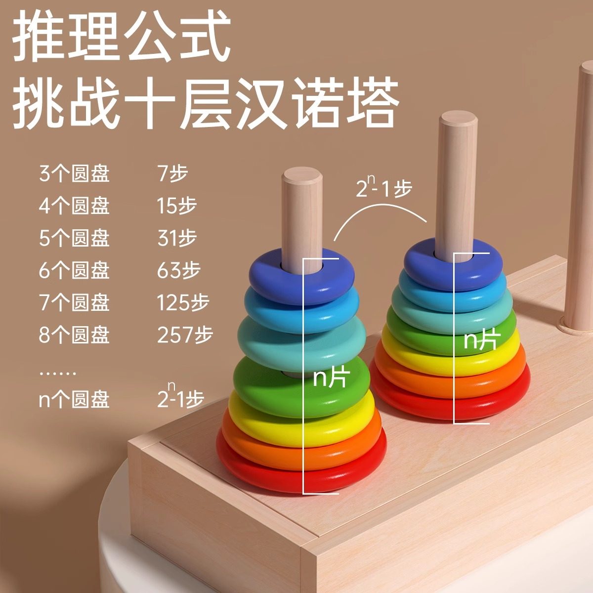 汉诺塔小学生10层八8层5六6阶一二三四五年级比赛专用智力玩具十