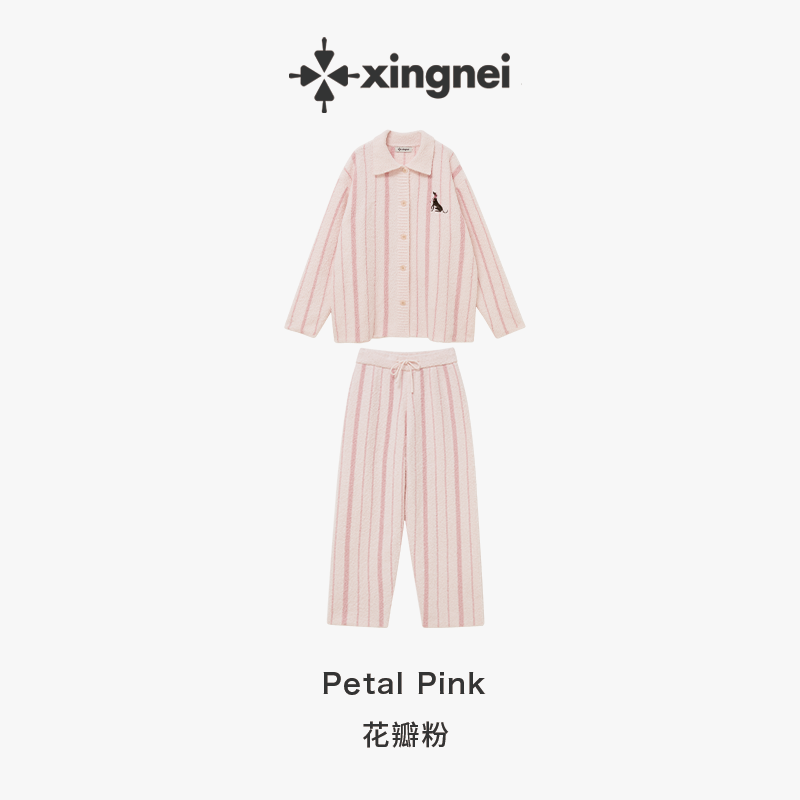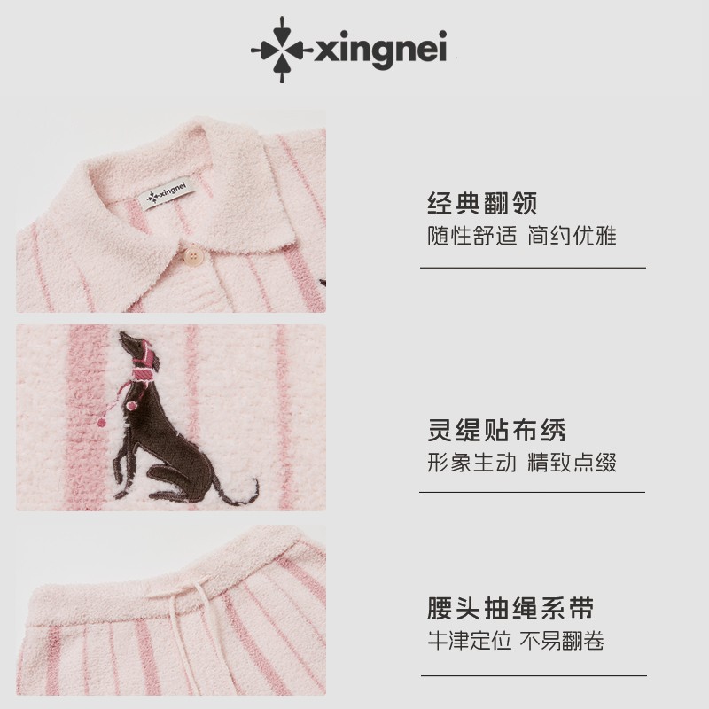 形内睡衣女加绒半边绒套装冬季2025新款粉色保暖条纹可外穿家居服