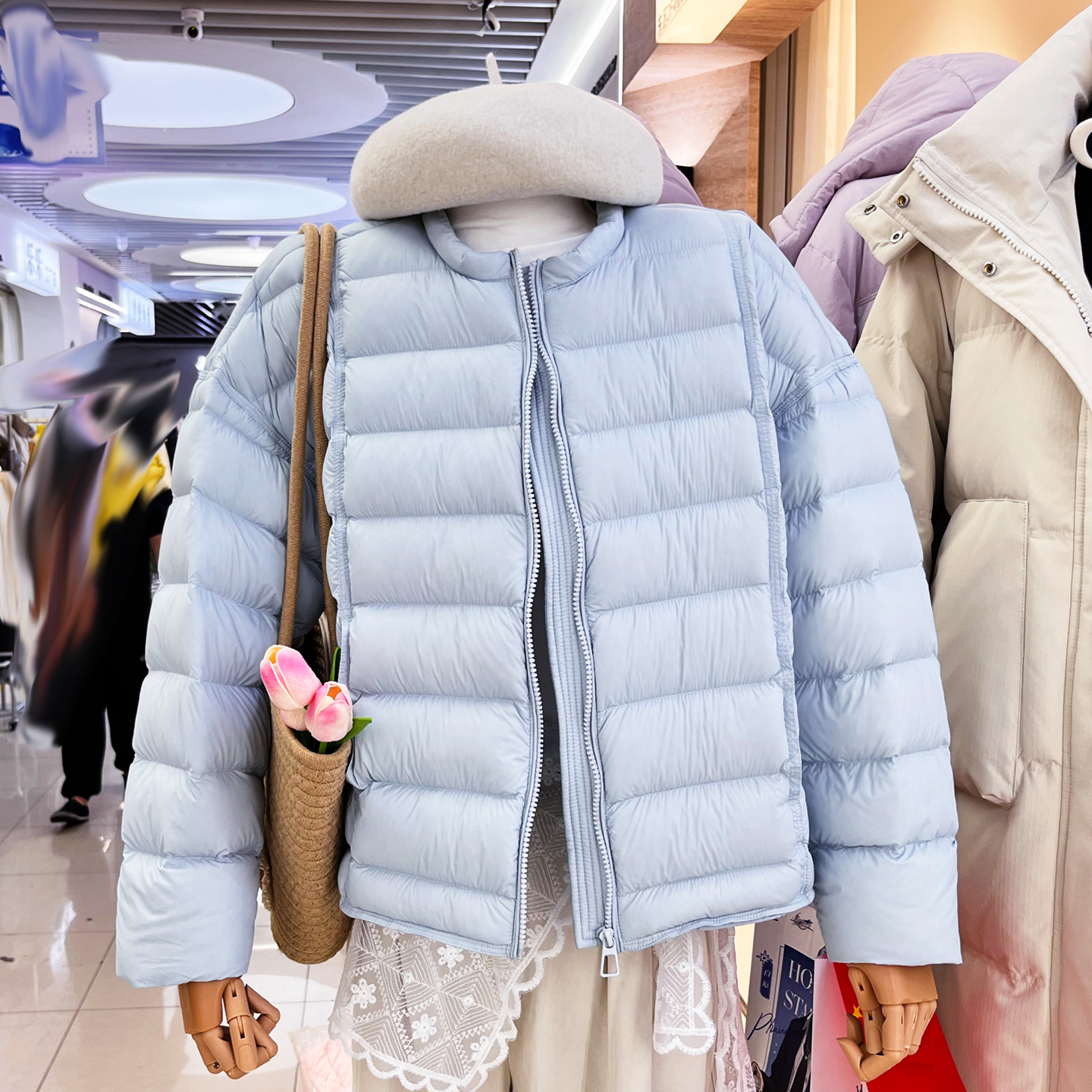 新国标90白鸭绒2025冬装新品女短款圆领轻薄款泡芙排骨羽绒服内胆
