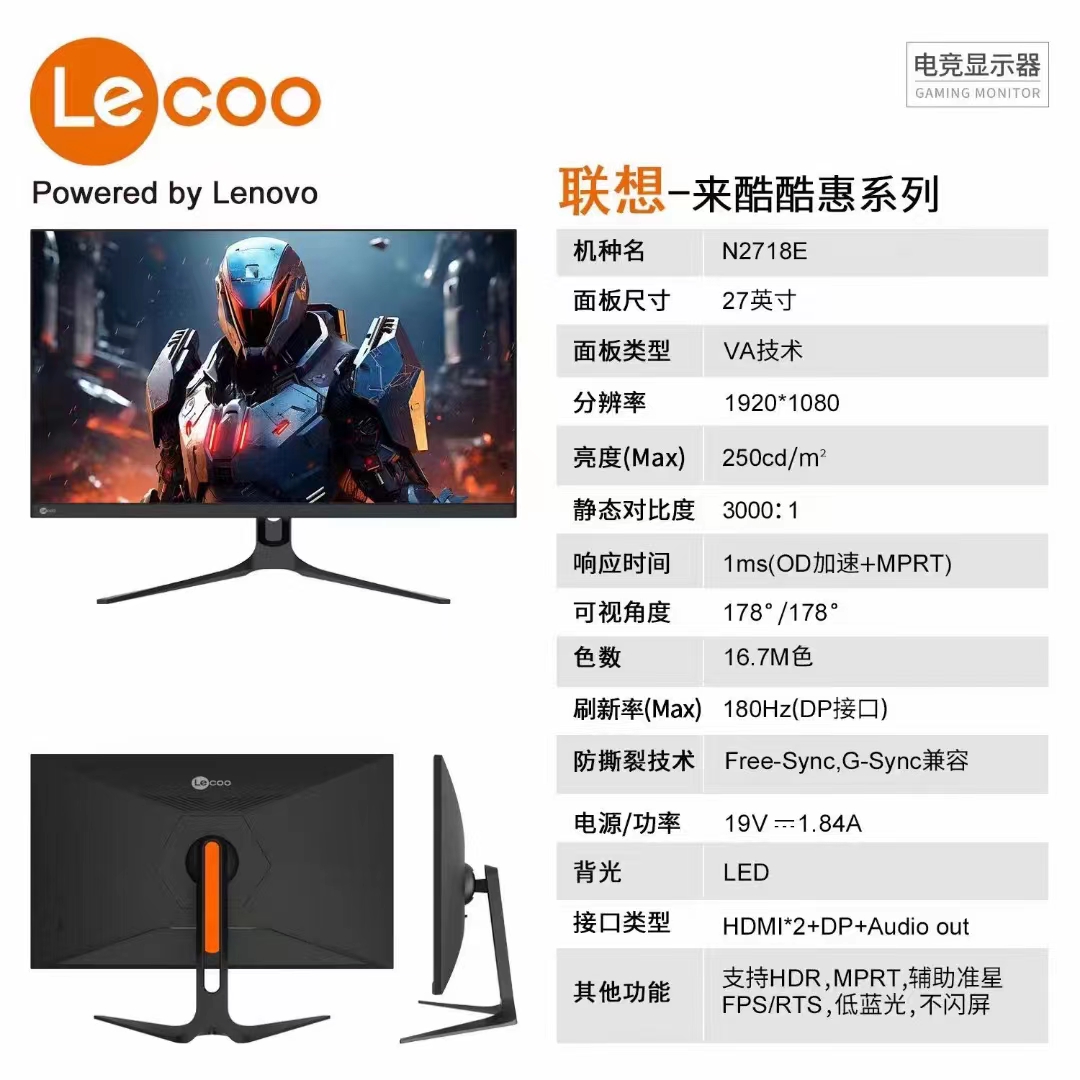 Lecoo联想来酷27英寸显示器 电脑办公显示屏B2221E-R 24寸/21.5