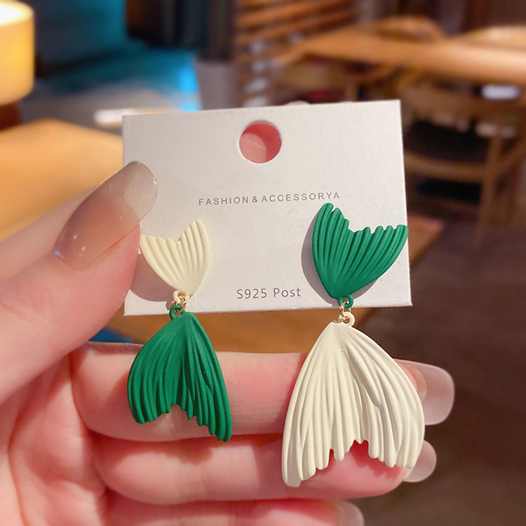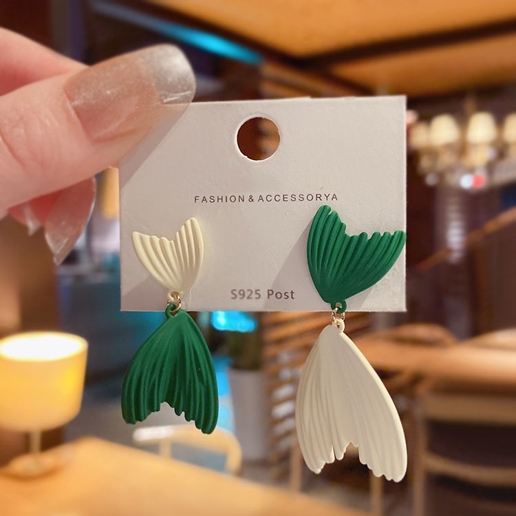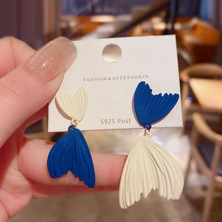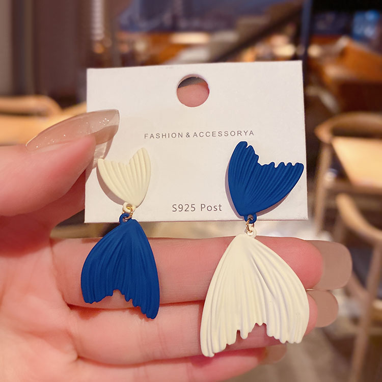 克莱因蓝色不对称鱼尾耳环设计感