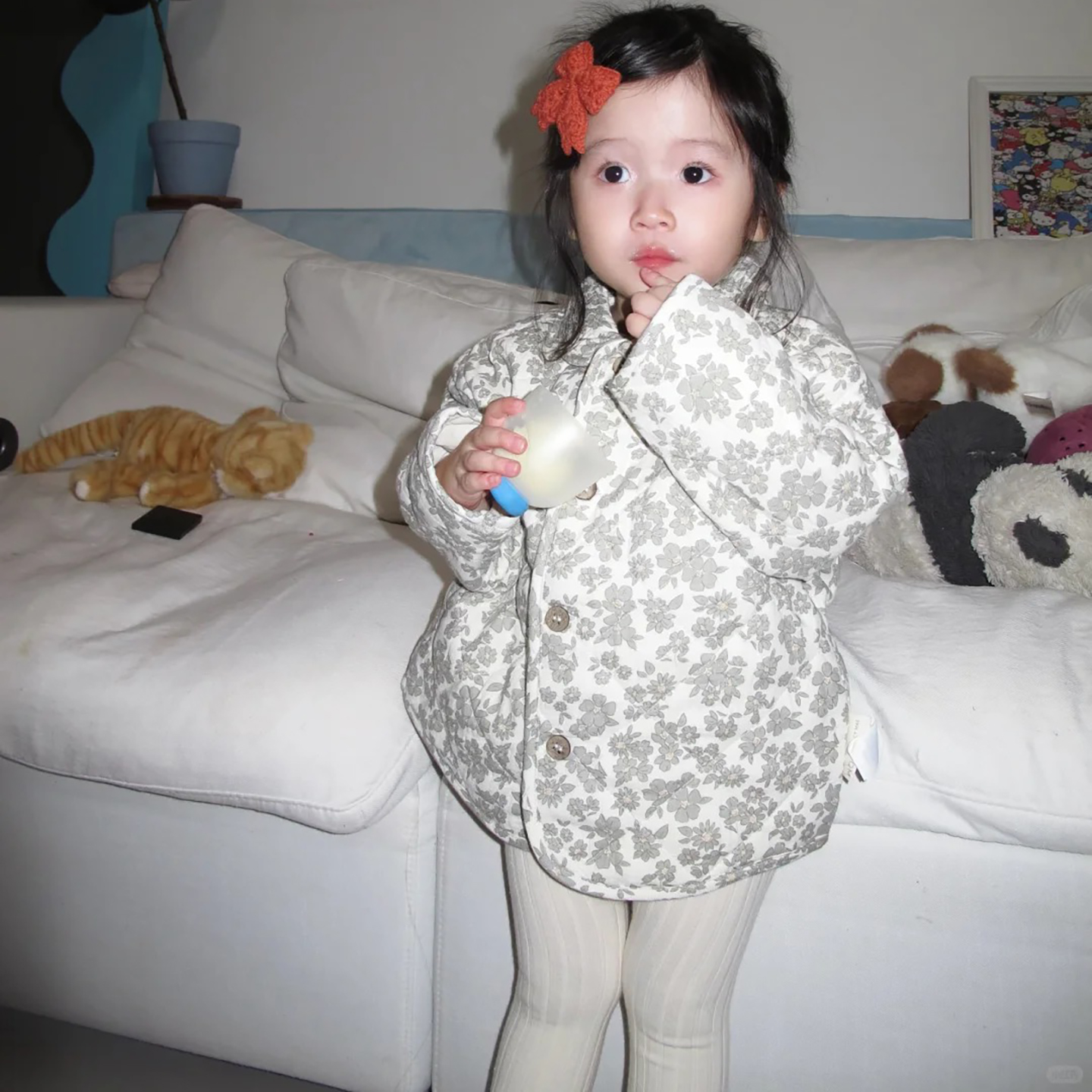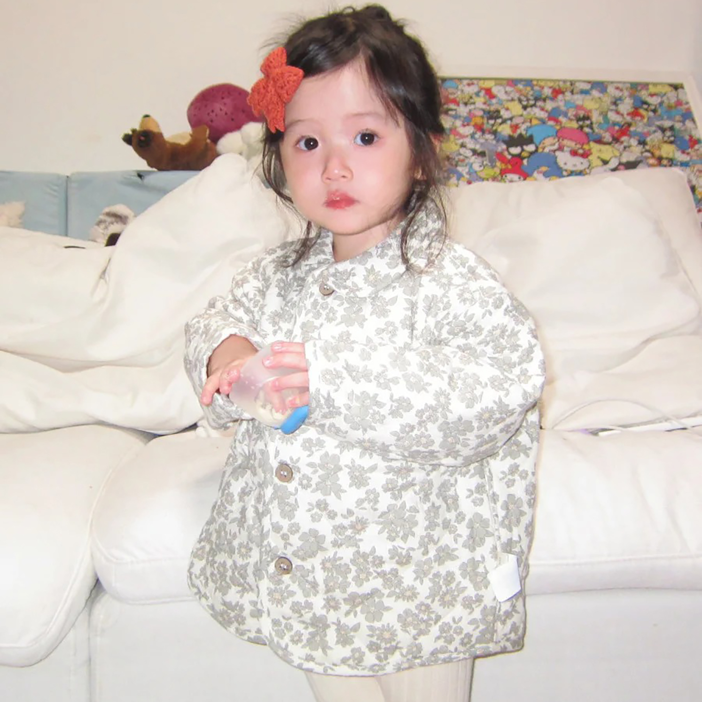 女童棉服2025冬季新款洋气宝宝宽松翻领外套韩版复古碎花儿童棉衣