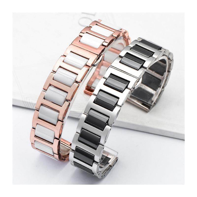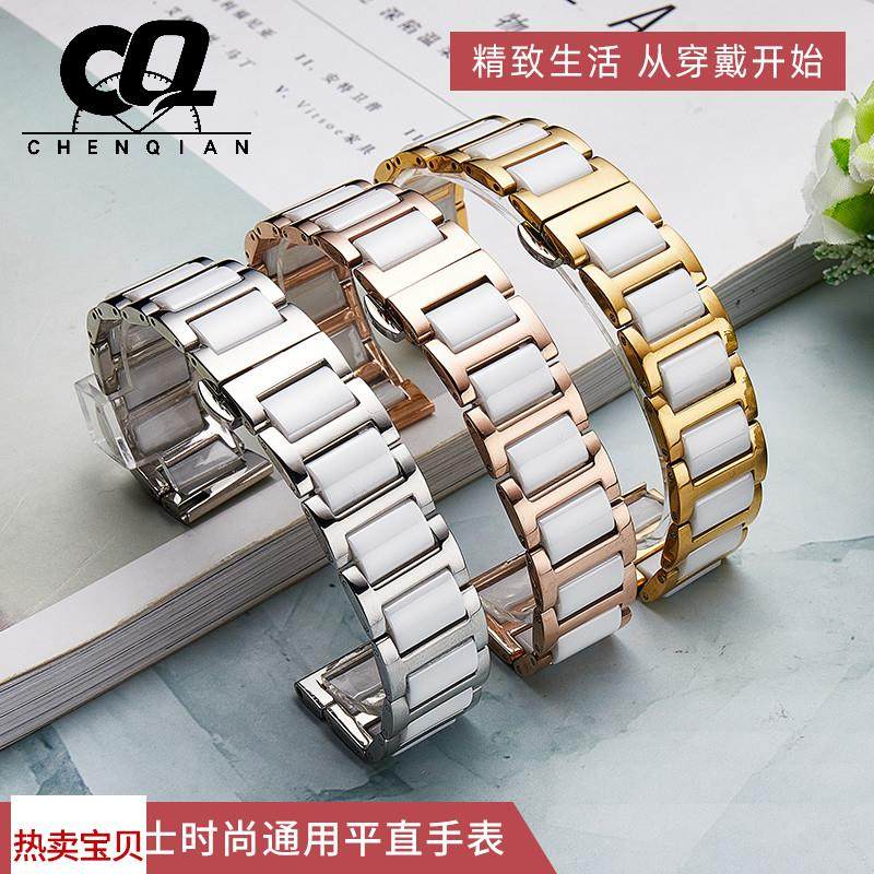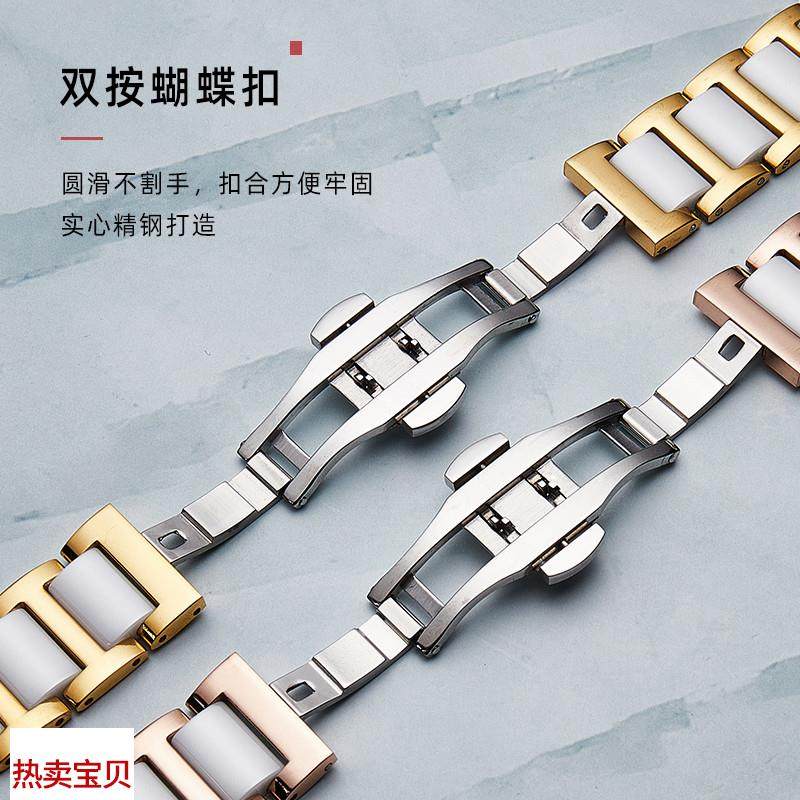 适用原装陶瓷手表带女飞亚达浪琴罗西尼天王阿玛尼天梭精钢金属表