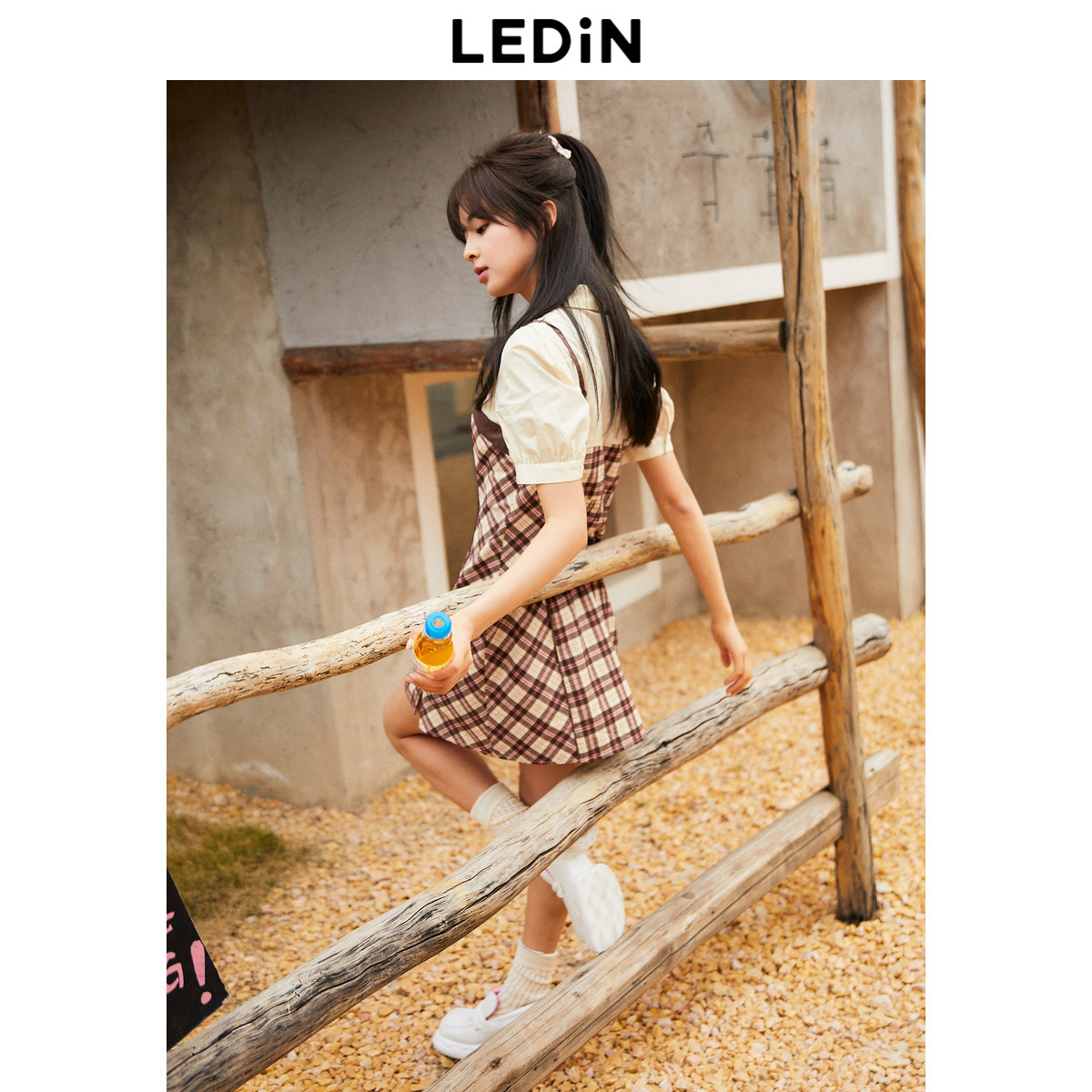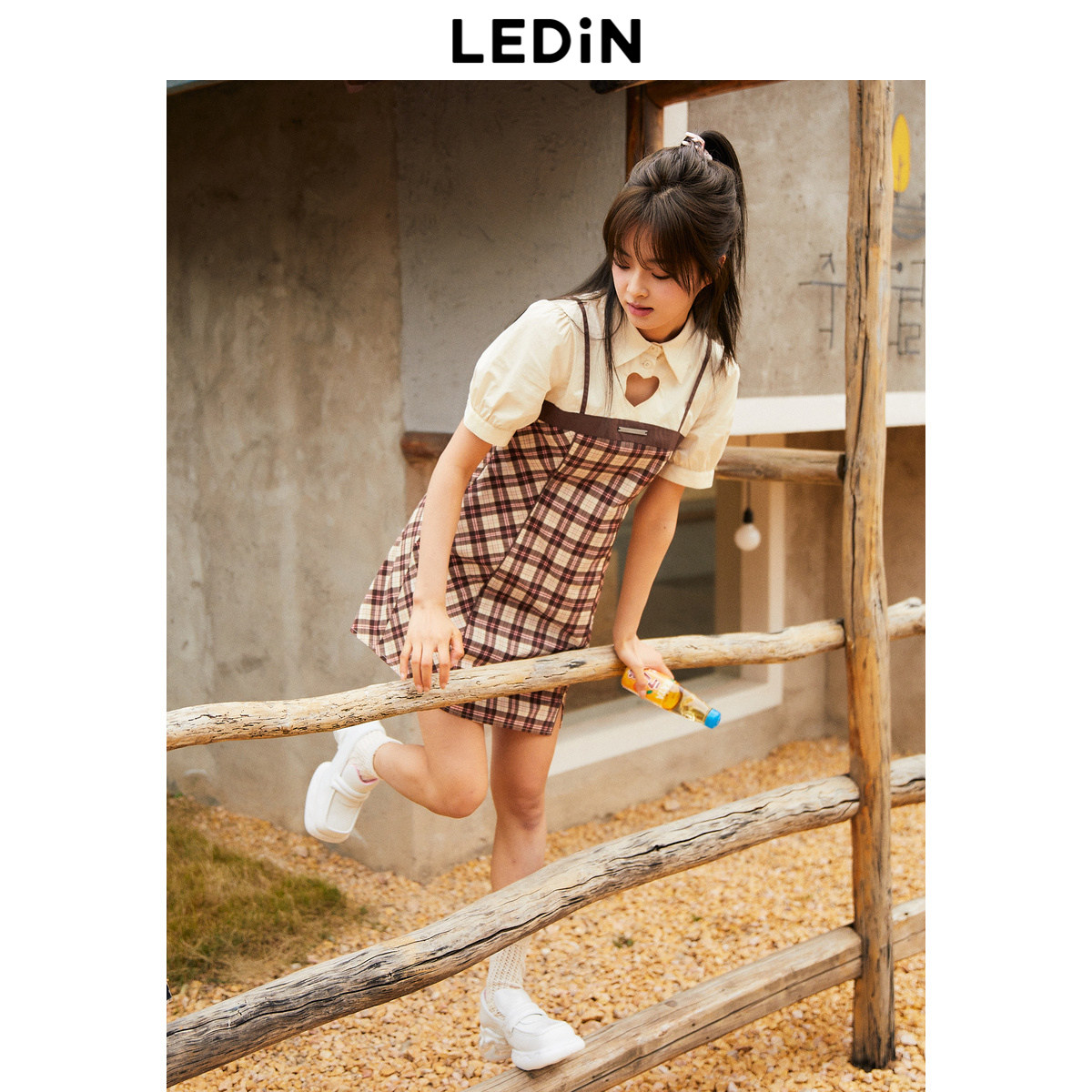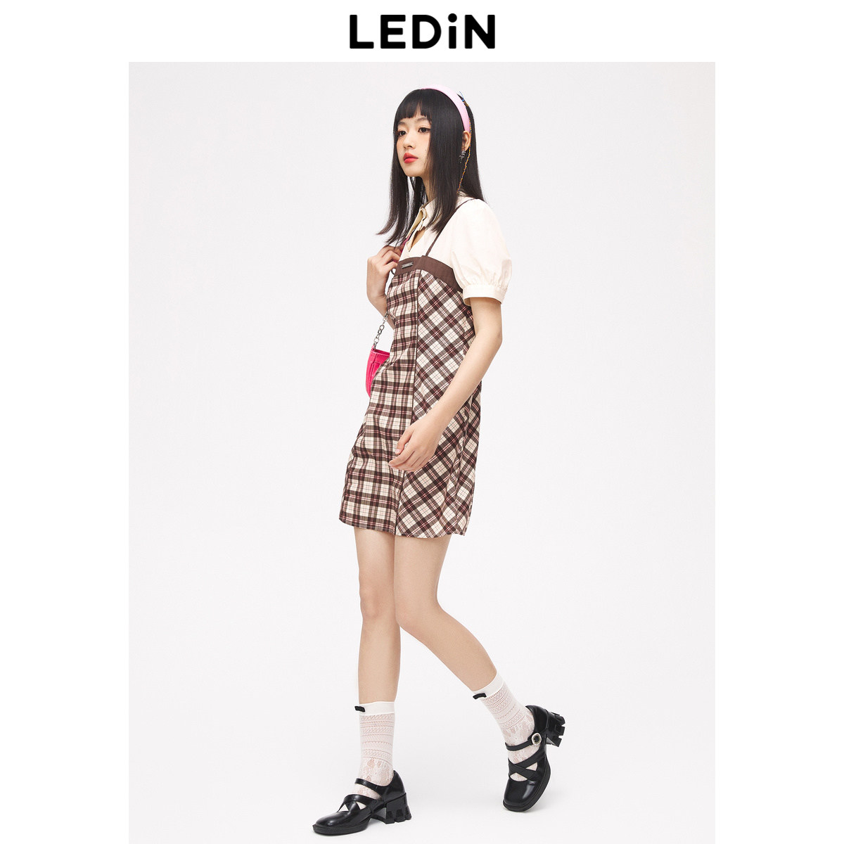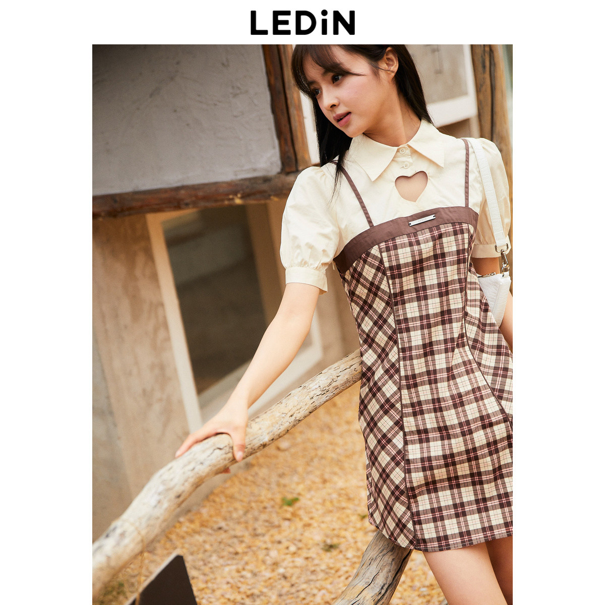 【断码清仓】乐町小心机连衣裙秋季格纹镂空假两件C1FAD2502