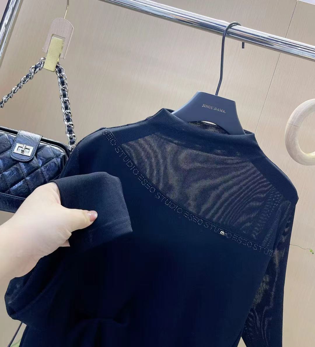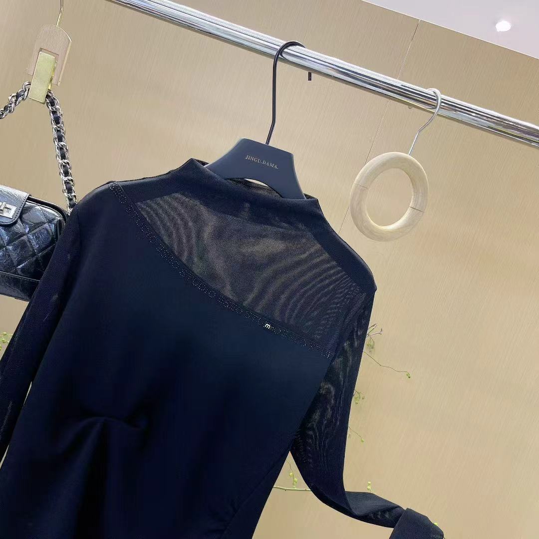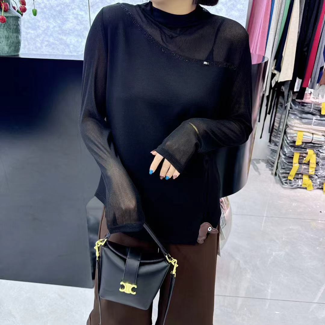 妃儿红3956秋冬加大码卫衣 长袖网纱修身显瘦时尚百搭打底衫