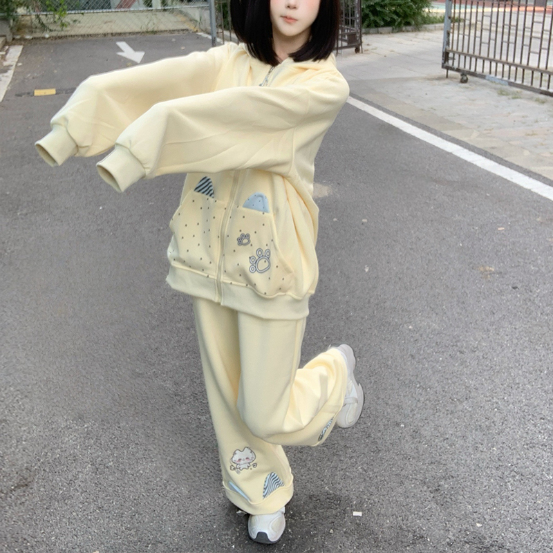 休闲运动服套装女2025秋冬季新款学生套头连帽卫衣时尚长裤两件套