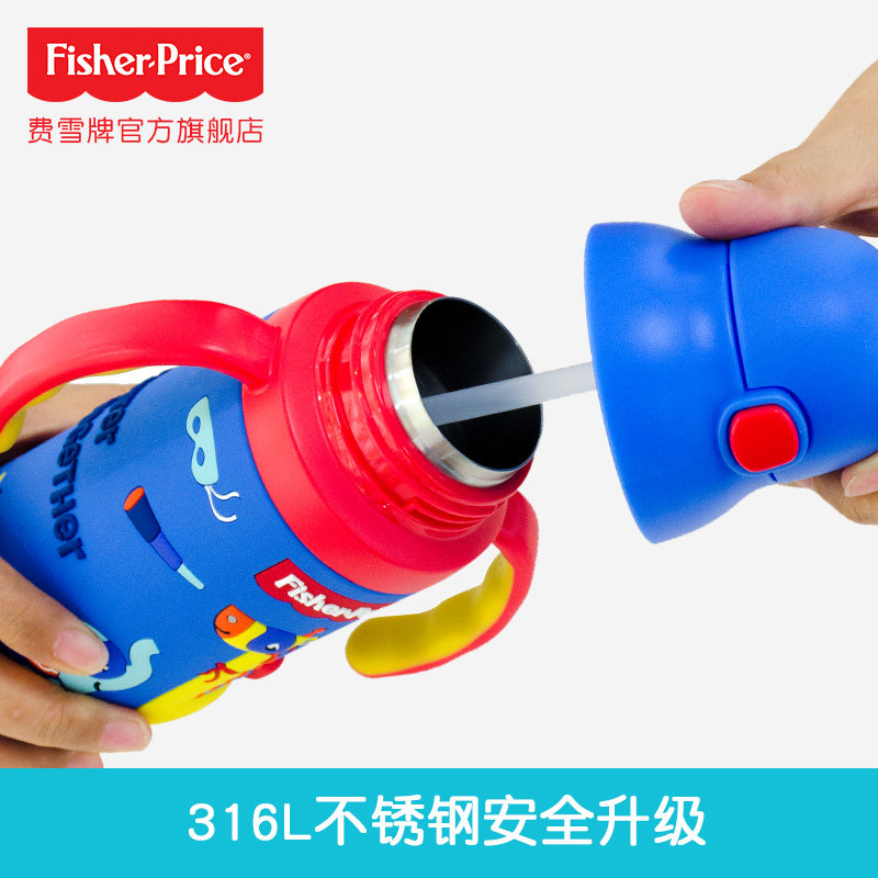 费雪婴幼儿抽真空保温吸管杯防摔杯宝宝喝水杯保温杯吸管水杯8636