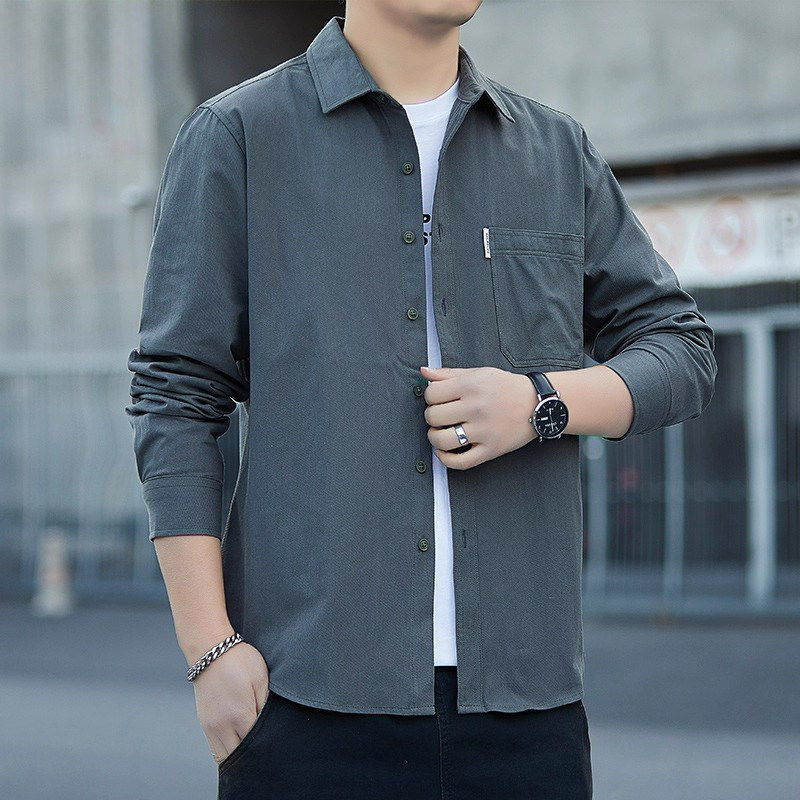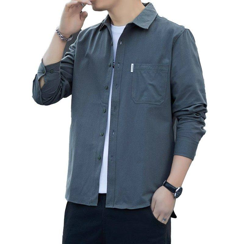 Yishion以纯官方时尚正品纯棉男长袖衬衫秋季新款休闲全棉工装外