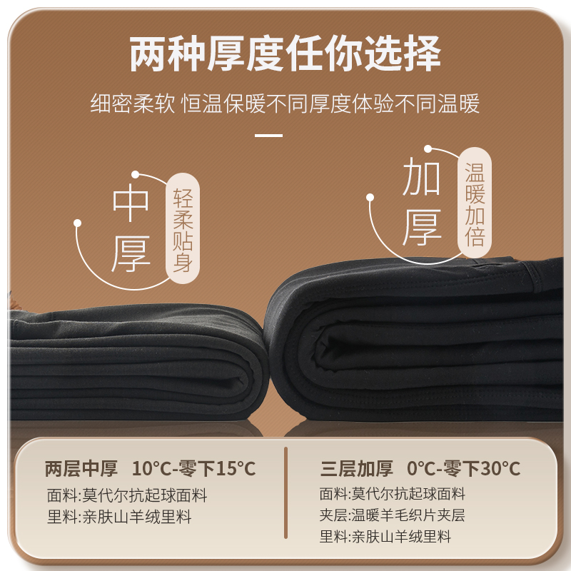【尊享莫代尔山羊绒】冬季保暖裤男女贴身加绒棉裤厚款打底羊毛裤