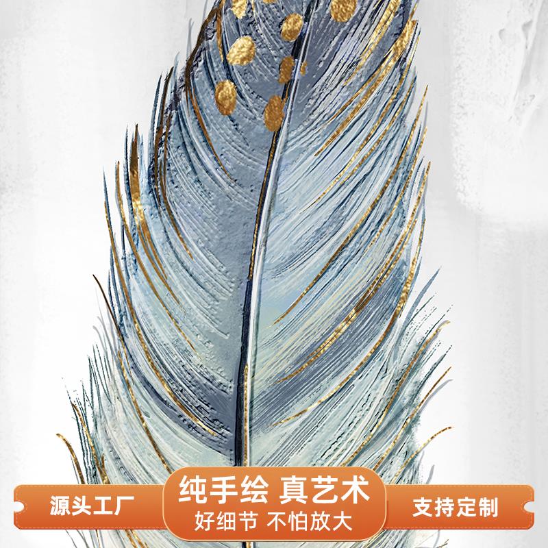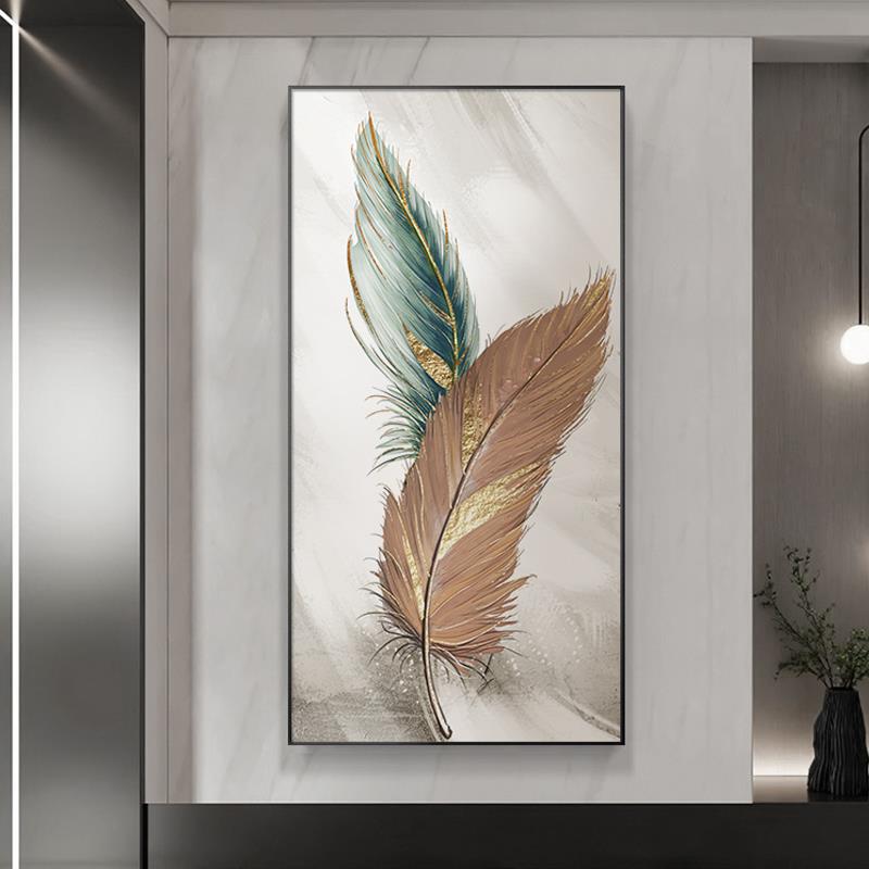 手绘油画简约玄关挂画轻奢高级感入户羽毛装饰画北欧抽象走廊挂画