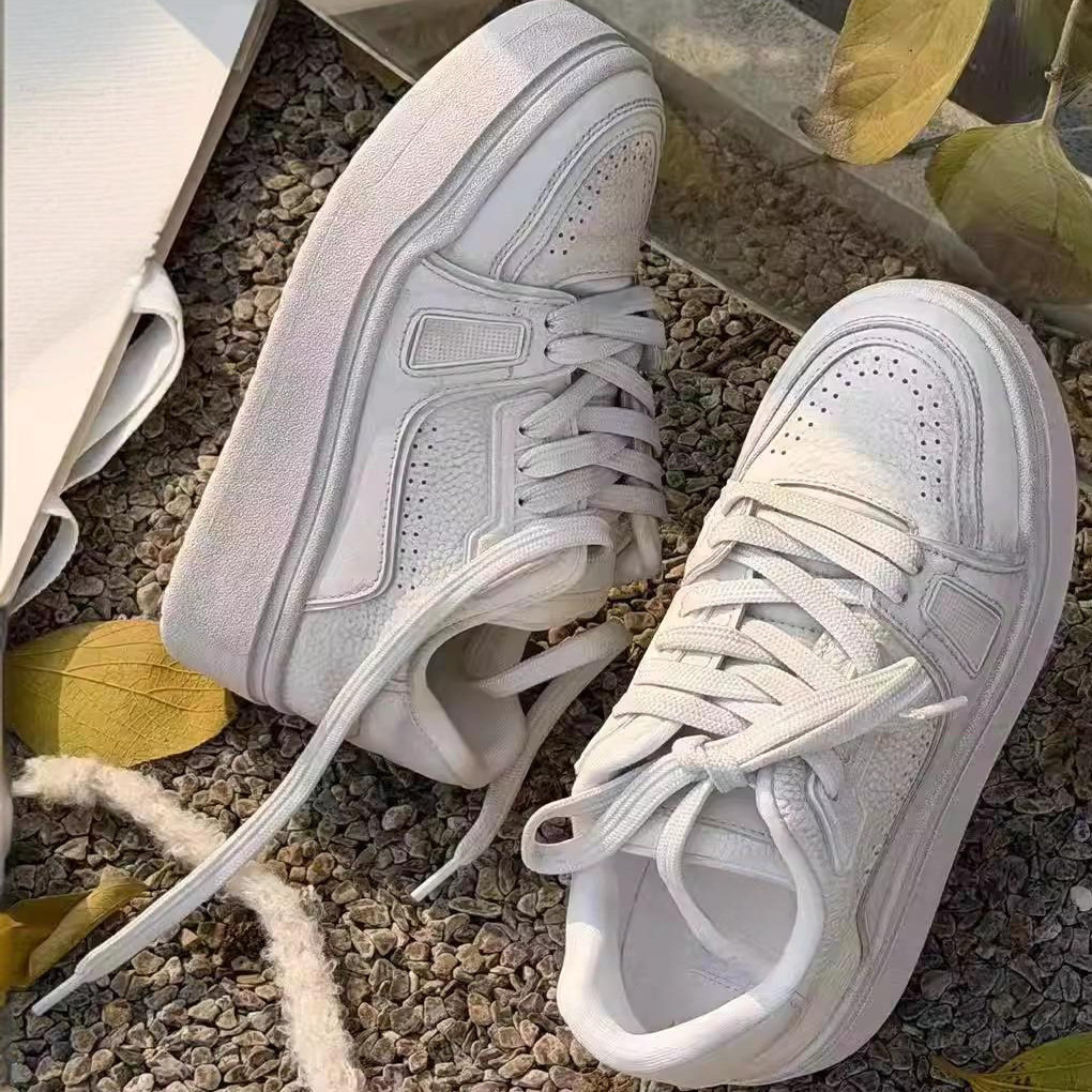 真皮厚底板鞋女2026年春季新款欧洲站百搭系带休闲韩版极简小白鞋