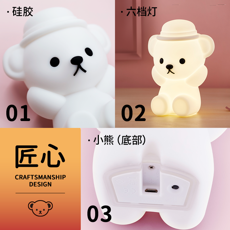 泰迪珍藏创意可爱风小夜灯拍打六档氛围灯生日新婚伴手礼物送女生