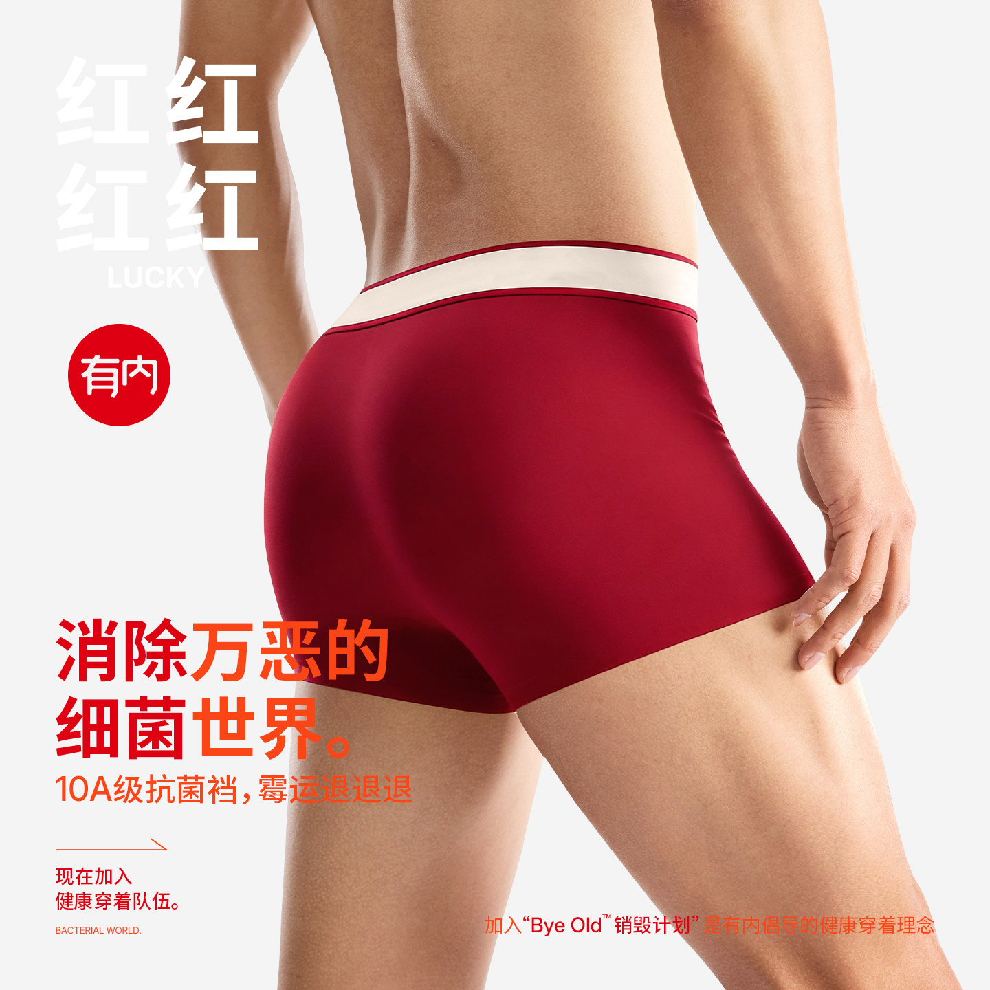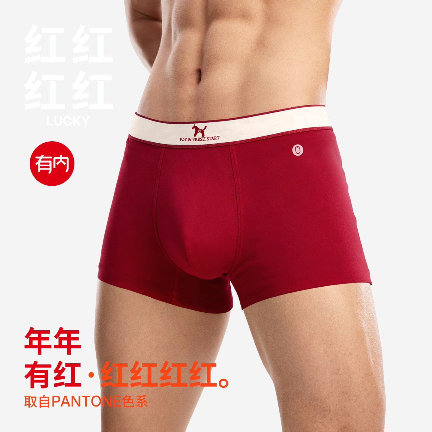 有内红色内裤男士马年纯棉抗菌裆a类本命年套装新款四角短裤衩男