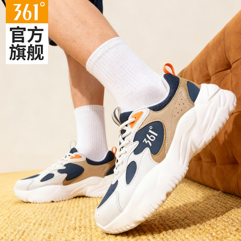 361男鞋运动鞋男款2026春秋新款皮面防水跑步鞋子软底减震休闲鞋