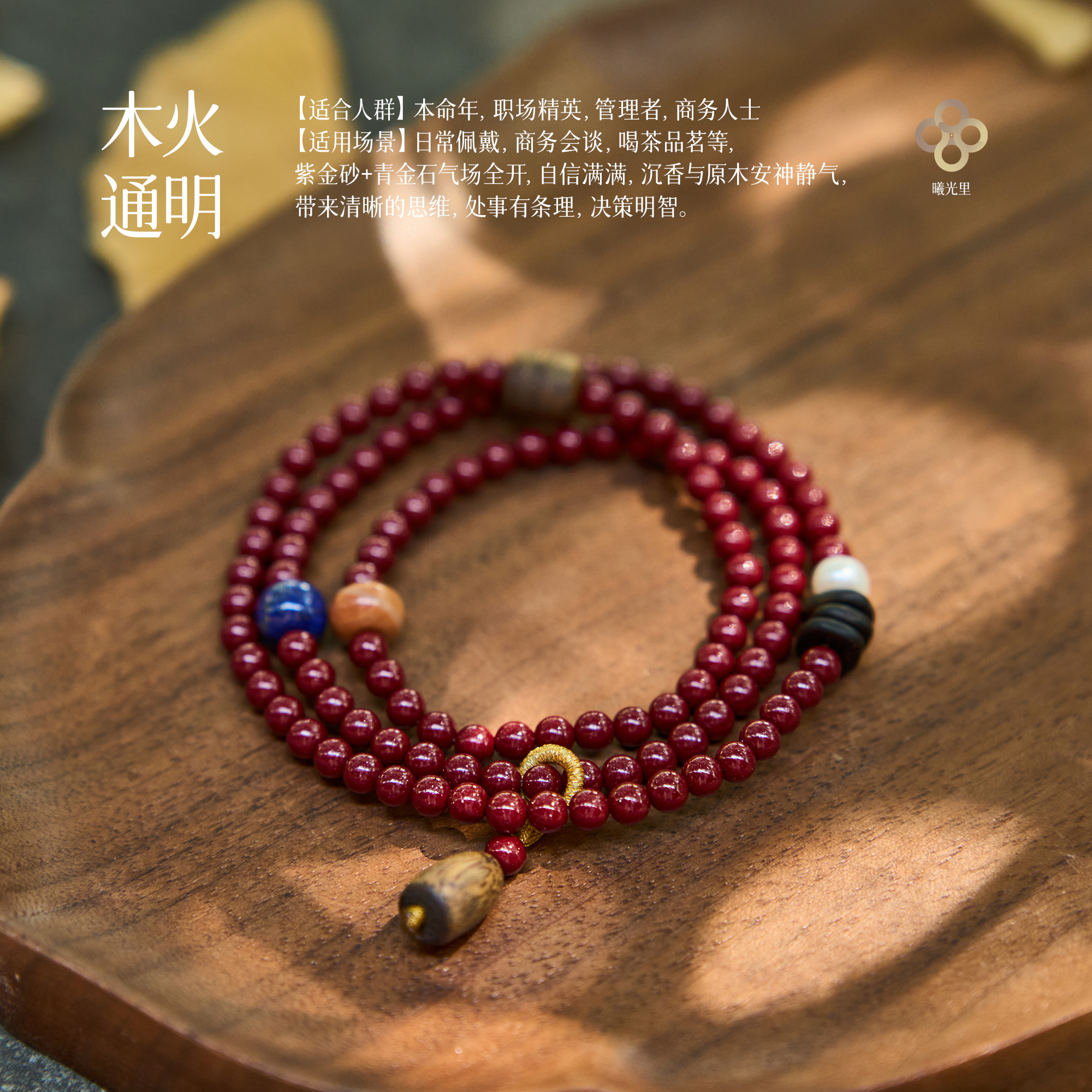 曦光里【木火通明】正品随单带证书紫金朱砂青金沉香本命手串手链