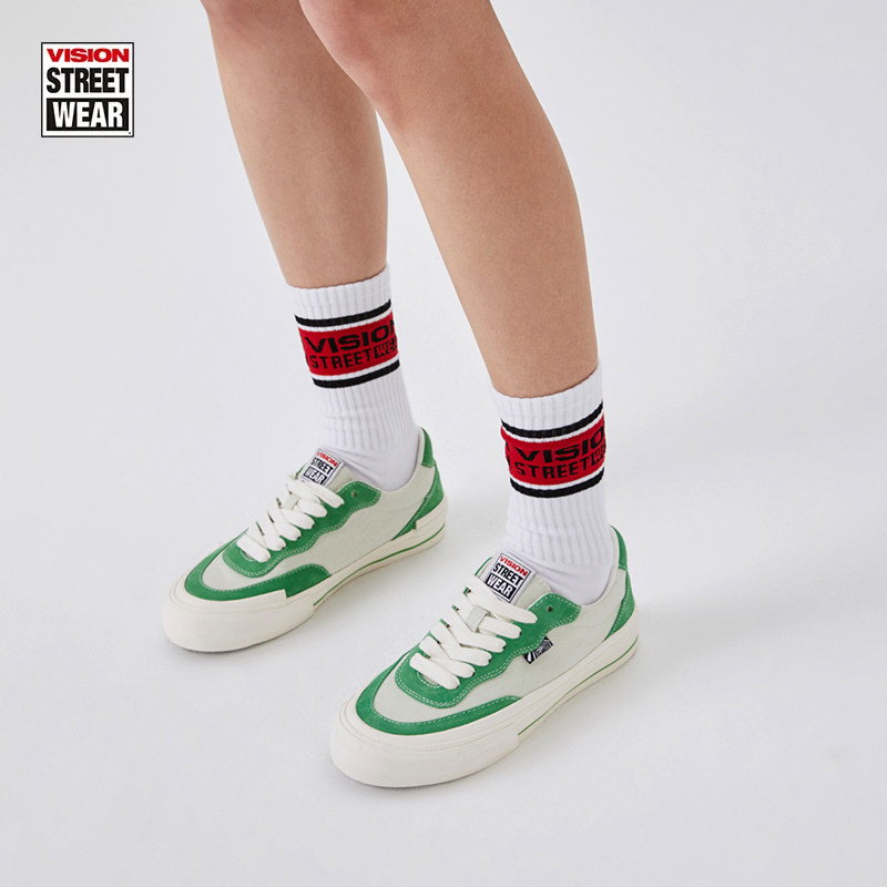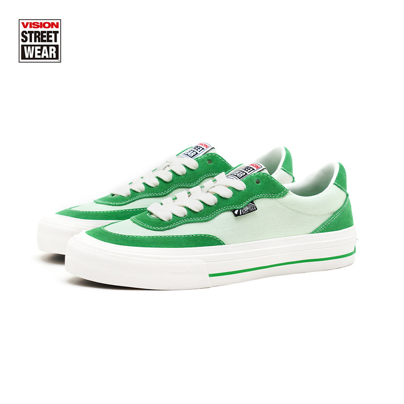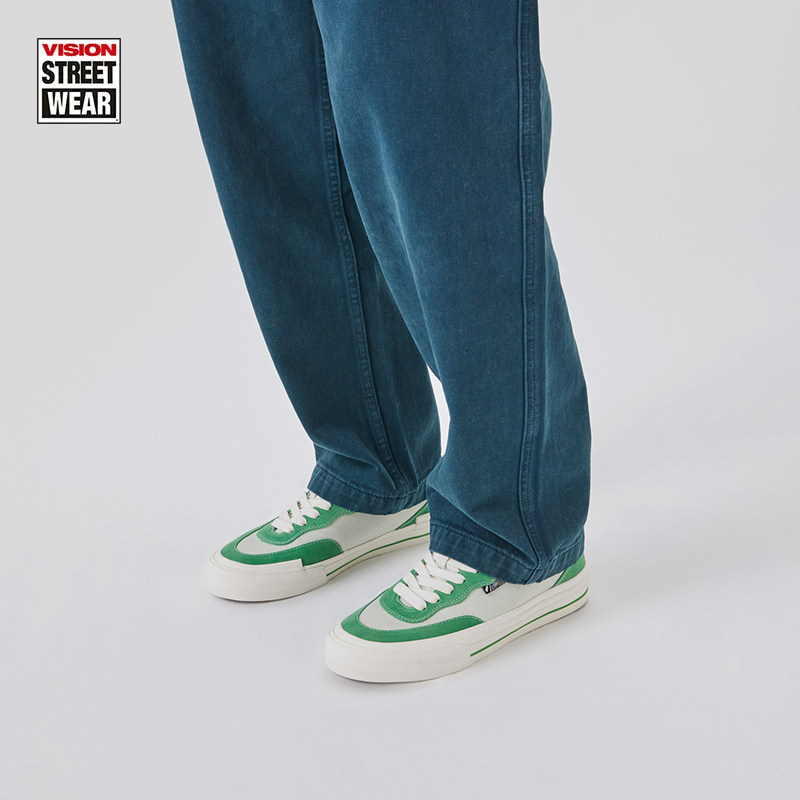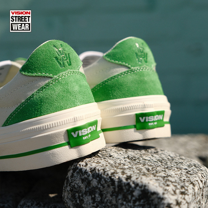 VISION官方 FLAT TOP灰绿色低帮经典翻毛皮帆布鞋男女街头滑板鞋