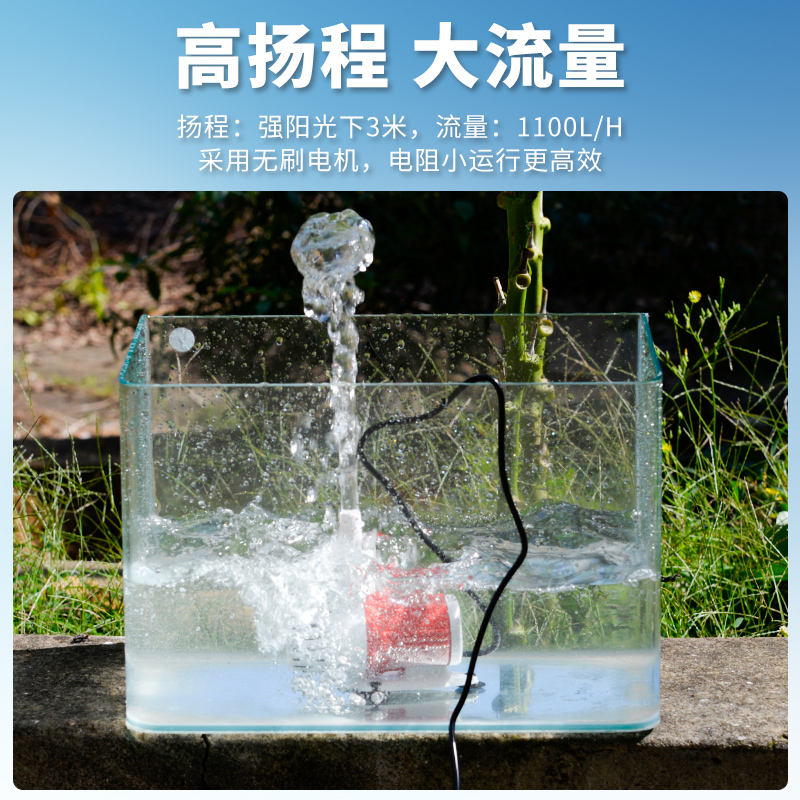 太阳能潜水泵户外无电自循环流水器12伏直流鱼池鱼缸过滤大功率
