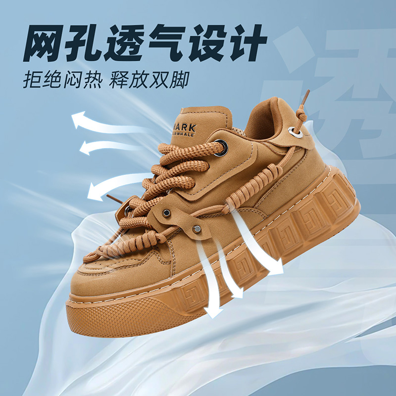 马克华菲小麦色国潮设计面包鞋子男潮鞋2025夏季新款增高男鞋板鞋