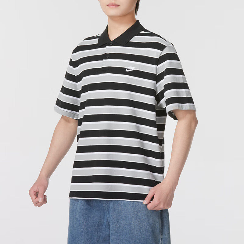 耐克短袖男装2024夏季新款户外健身运动服POLO衫条纹翻领休闲T恤