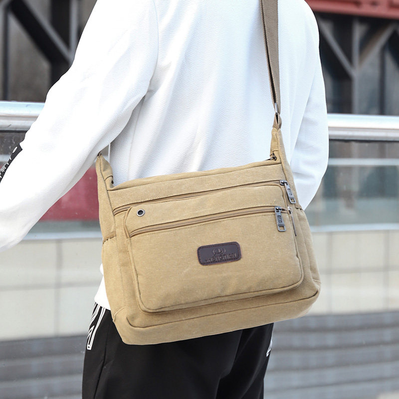 2023单肩包男士休闲横款大容量背包帆布韩版时尚斜挎包潮牌男包