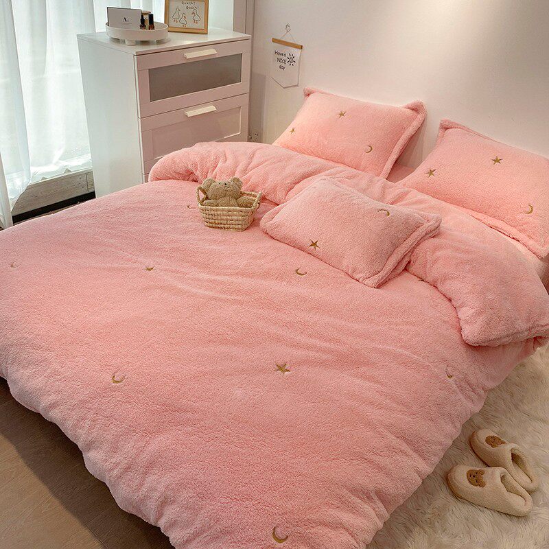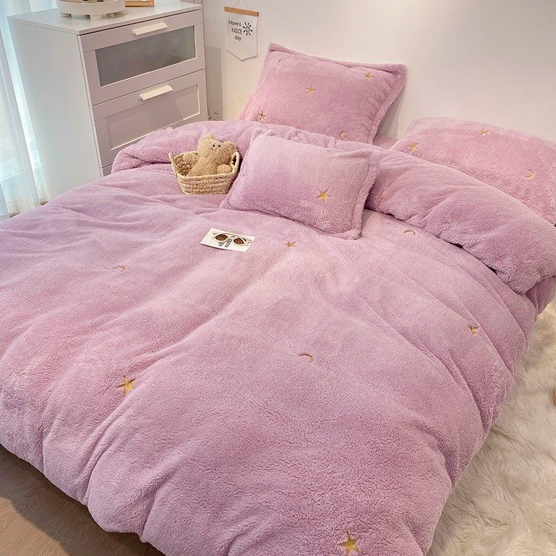 冬季泰迪绒四件套珊瑚绒双面绒毛绒高档刺绣卡通被套床单床上用品