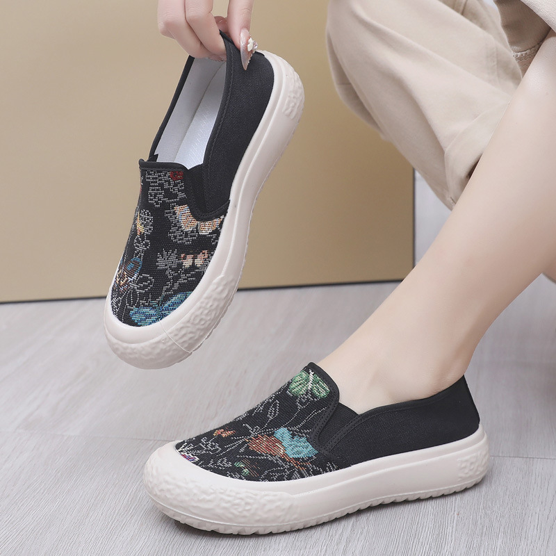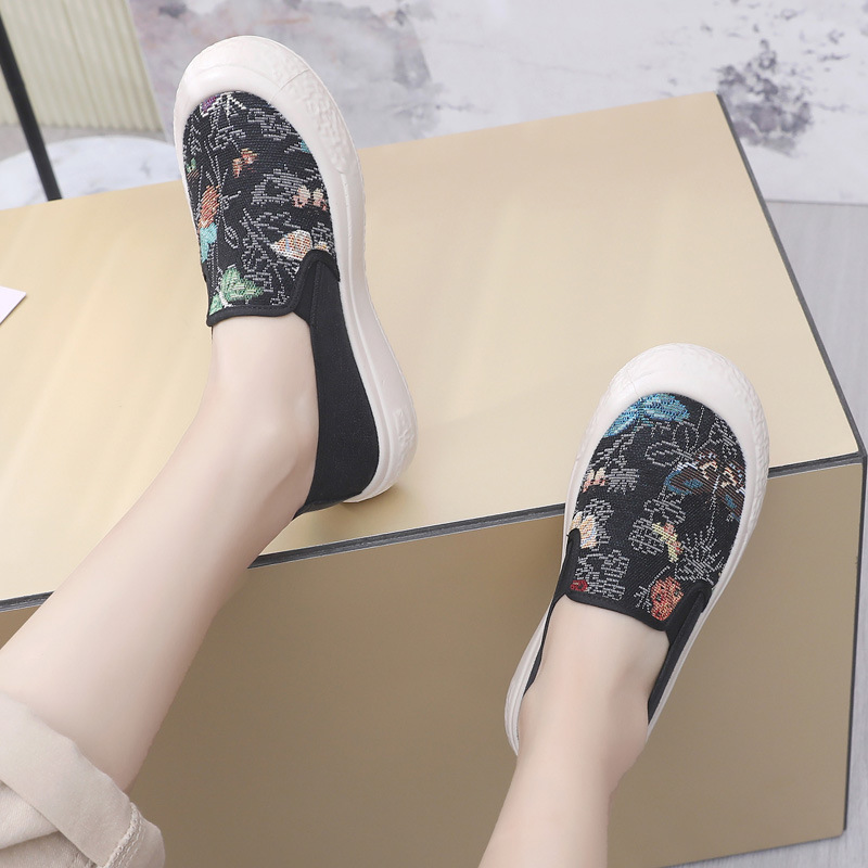 2024春季新款乐福鞋帆布女鞋懒人一脚蹬厚底渔夫鞋时尚休闲布鞋女