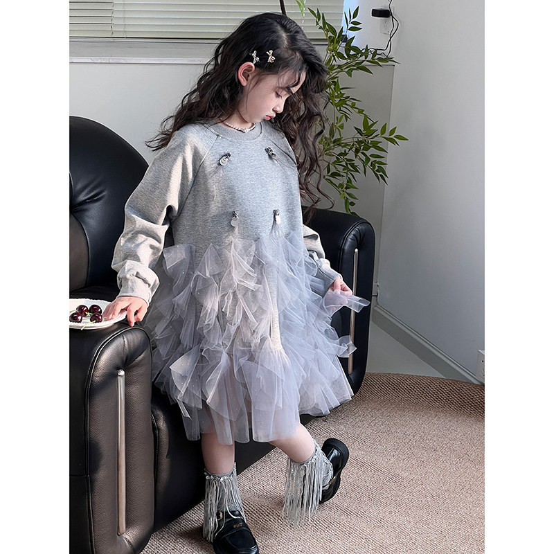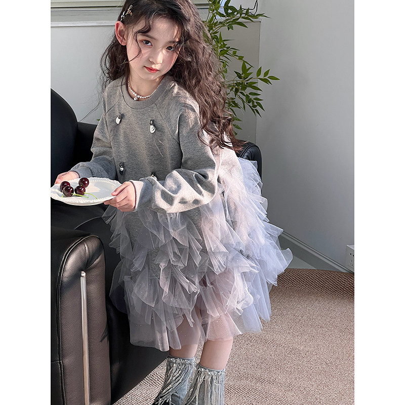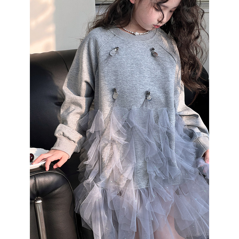女童连衣裙2025秋季新款儿童公主裙子卫衣裙中大童洋气网纱蛋糕裙