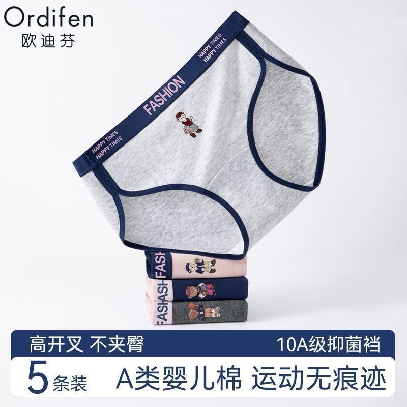 欧迪芬小熊纯棉内裤女加长裆10A抑菌全棉舒适不卡档美式三角裤