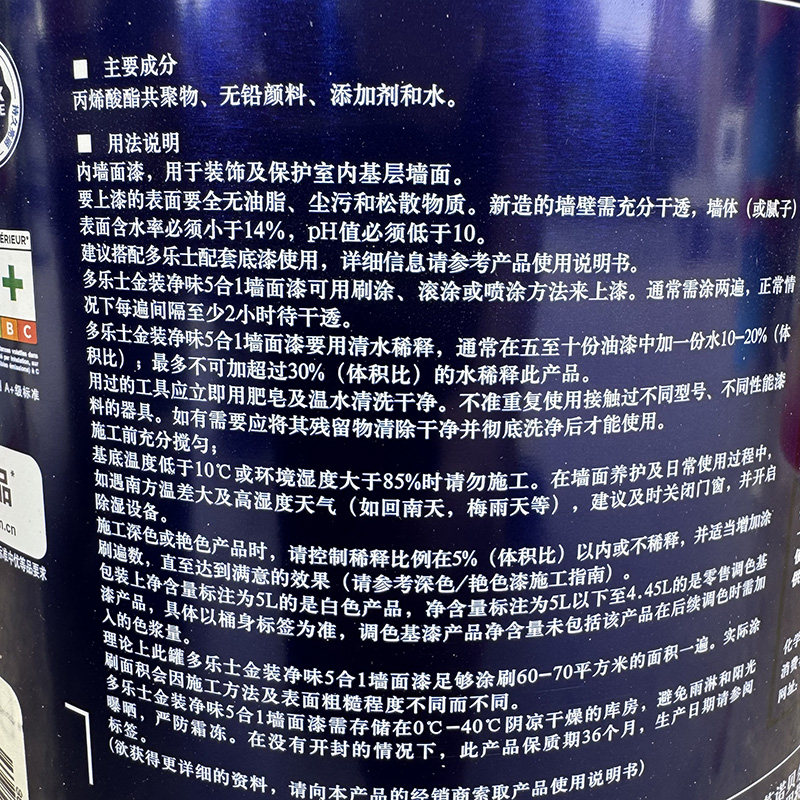 多乐士金装净味五合一内墙净味乳胶漆家装环保墙面漆竹炭优等品漆